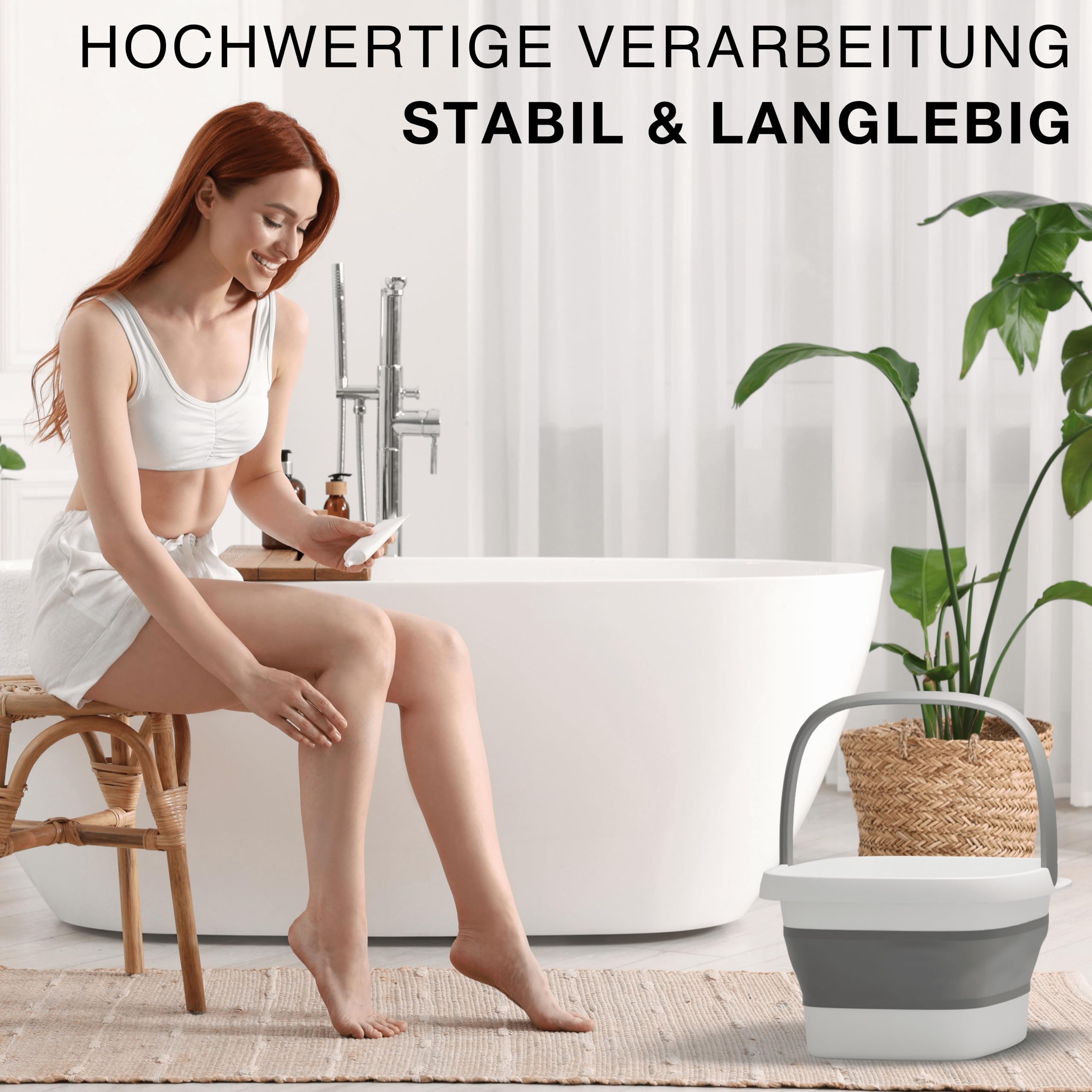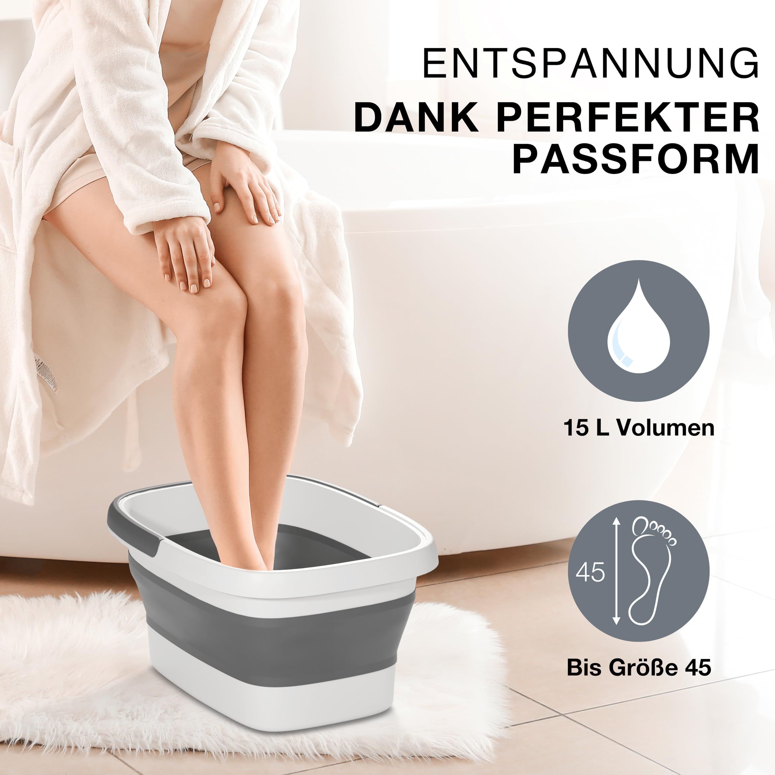 • Platzsparend & Praktisch: Dank der innovativen Falttechnik lässt sich das Fussbad platzsparend verstauen und ist ideal für Reisen. Der integrierte Griff sorgt für eine einfache Handhabung und minimiert das Risiko von Wasserverschütten.