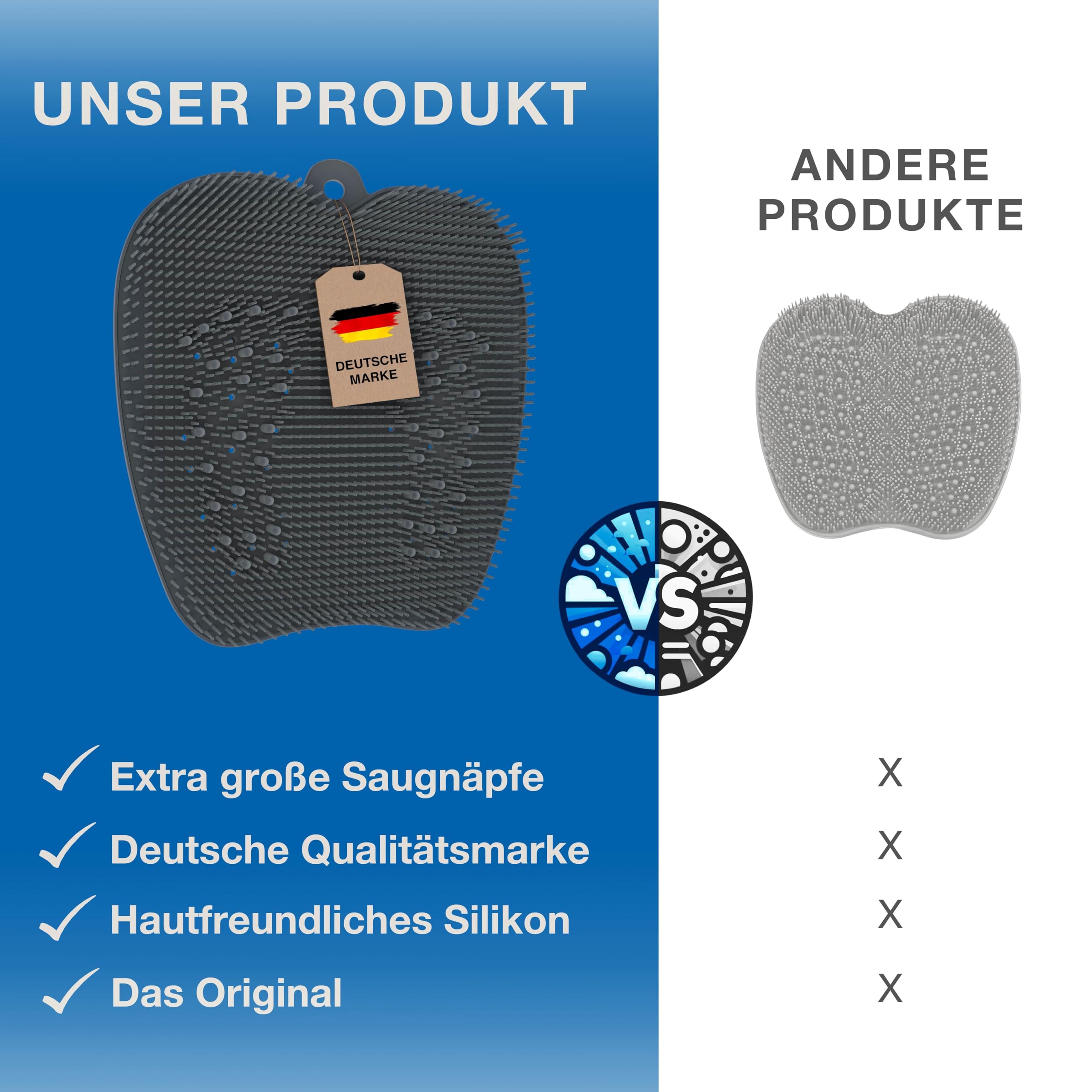 Flexible Noppen und feste Borsten passen sich jeder Fusskontur an und reinigen die Haut gründlich, während die hautfreundliche Silikonoberfläche sanft zu allen Hauttypen ist. Die Anti-Rutsch-Technologie und grossen Saugnäpfe garantieren stabilen Halt auf nassen Böden, sodass die Anwendung sicher und komfortabel bleibt.