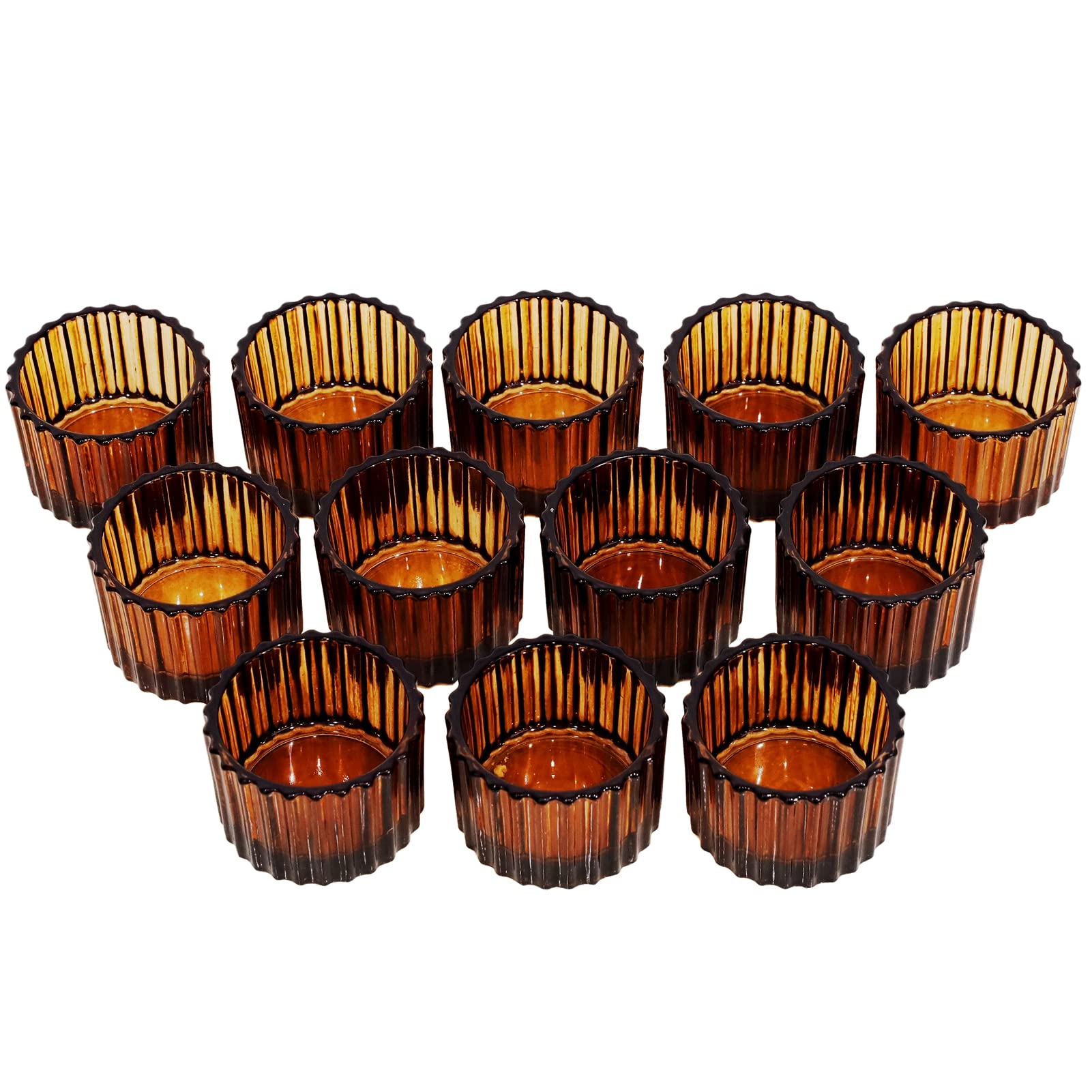 Vohocandle 12 Stück Teelichthalter Aus Glas, 5x3,5 cm, Votivkerzenhalter, Heimdekoration, Braun Teelichtglas für Weihnachten, Geburtstagsfeier, Urlaub