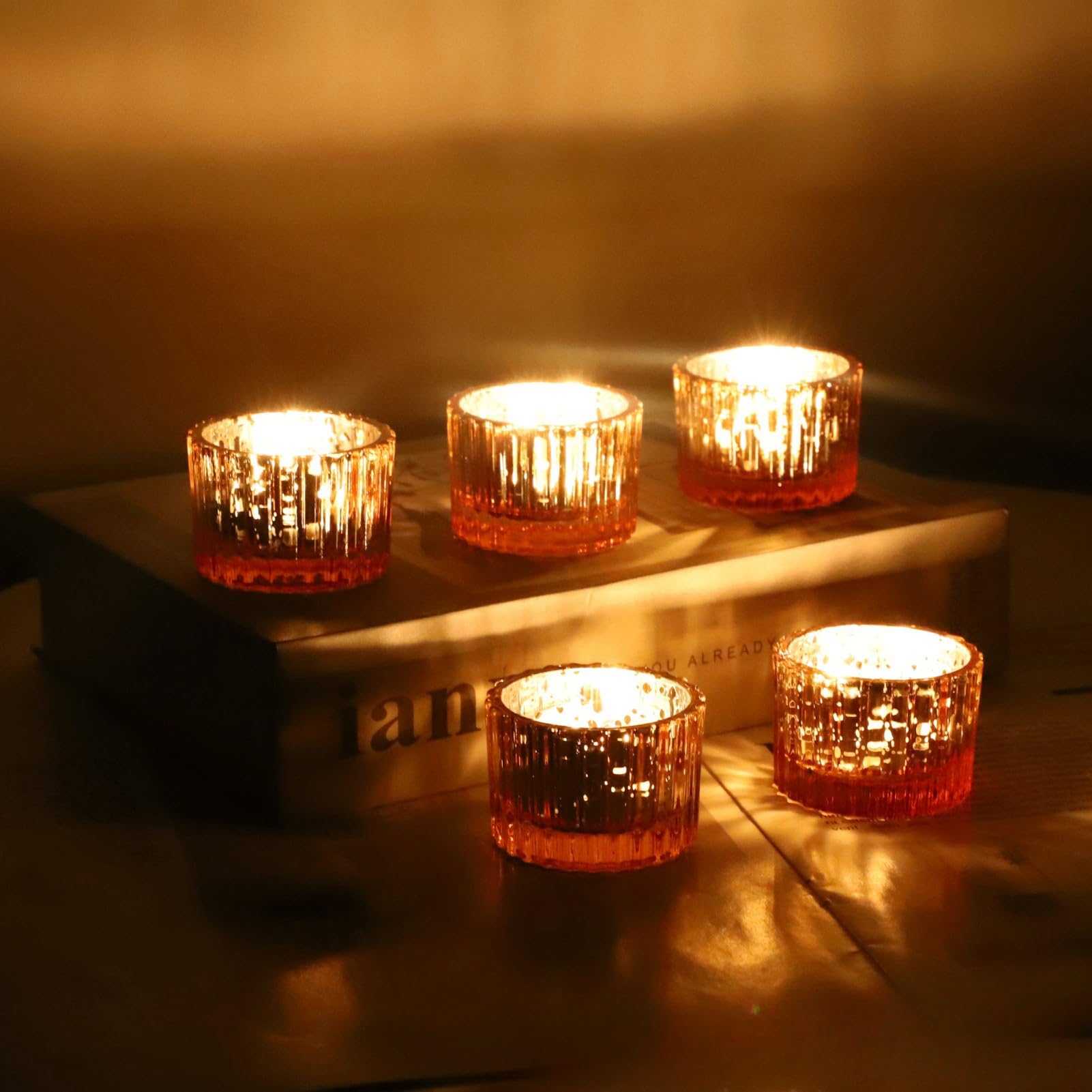Diese Kollektion von Gold Teelichtgläser Vintage ist die perfekte Ergänzung für jede Einrichtung. Jedes Gold-Teelichthalter-Glas ist aus Goldglas, was den Charme der Laterne beeinflusst. Diese Laternen können als Teelichtgläser verwendet werden, um eine warme und beruhigende Atmosphäre zu schaffen. Das Set mit 12 Teelichtgläser Vintage, jeder misst 5 × 3,5 cm. Das Teelichtglas-Gold ist stabil und wiegt jeweils 70 Gramm. Das Windlichtglas ist für Standard-Teelichter, LED-Teelichter, kleine Votivkerzen oder als alltägliche Heimdekoration konzipiert, das langlebig und robust ist. Durch das goldene romantische Glas können Sie den Schein des Kerzenlichts sehen, und das Design lässt sich leicht in jedes Dekor integrieren. Wenn Sie Veranstaltungen wie Hochzeiten oder Jubiläen feiern, können Sie mit diesen Teelichtgläser klein die Atmosphäre noch romantischer gestalten. Der Glanz des rustikalen Glases verleiht jedem Anlass das gewisse Etwas. Dank der einfachen Reinigung ist dies Teelichtglas praktisch und pflegeleicht. Um Ihre Teelichter Gläser sauber zu halten, wischen Sie sie einfach mit einem feuchten Tuch ab. Sie können diese Halter immer wieder verwenden, um Ihre Lieblingskerze zu präsentieren. Das Set wird mit grosser Sorgfalt hergestellt, um eine hohe Qualität bei einem erschwinglichen Preis-Leistungs-Verhältnis zu gewährleisten. Bestellen Sie noch heute und verschönern Sie Ihr Zuhause mit diesen wunderschönen Votivkerzenhalter und Windlichtern.