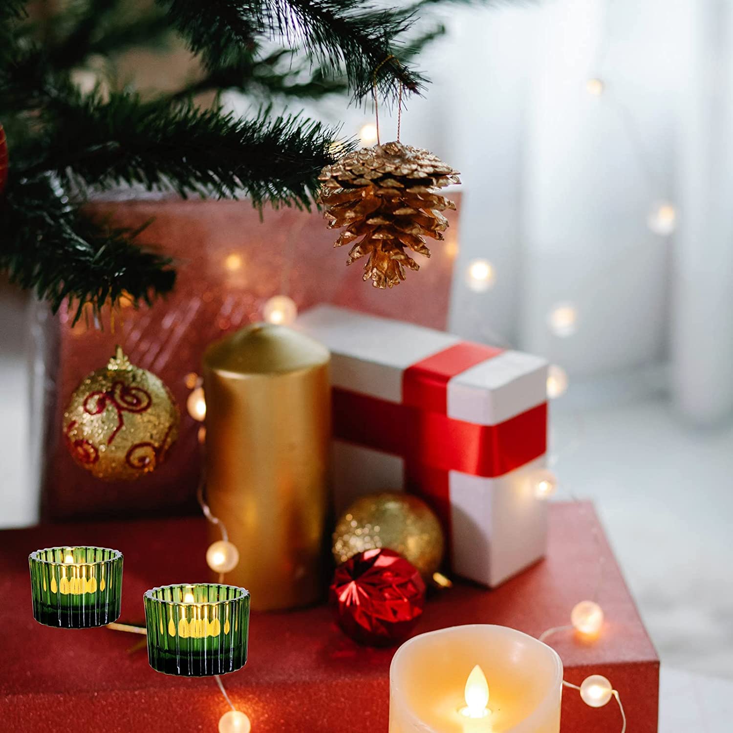Vohocandle Grüner Teelichthalter, 12er-Set, Kerzenhalter aus Glas für Hochzeitstischdekoration, Teelichter, Kerzenhalter für Heimdekoration