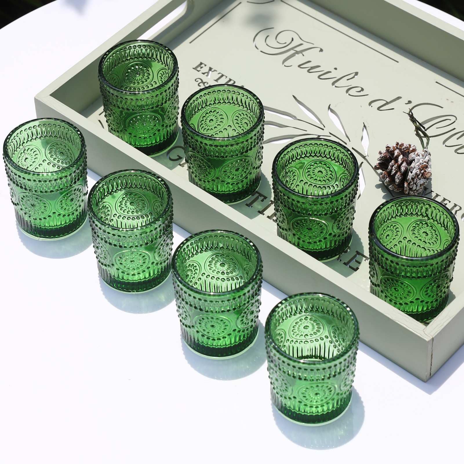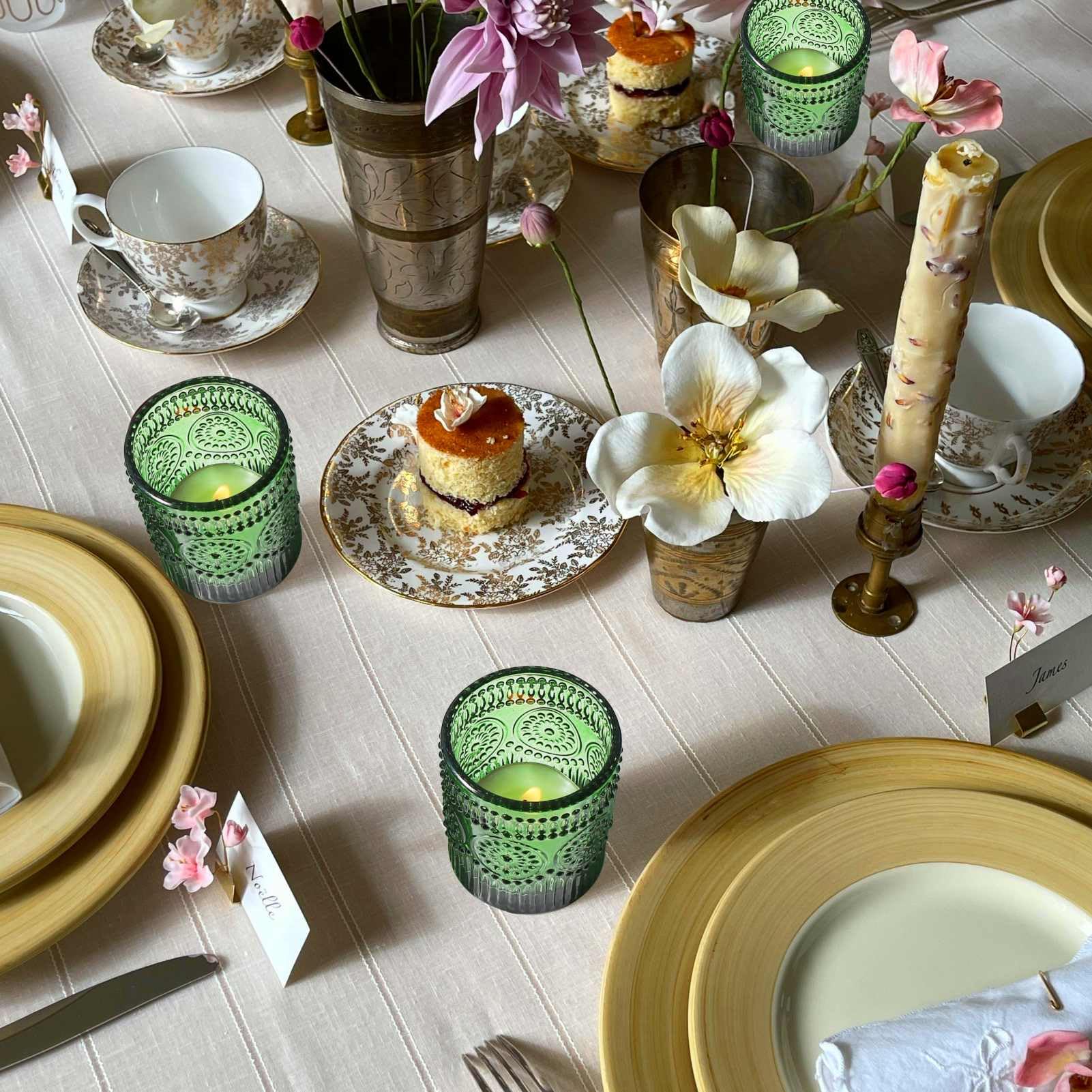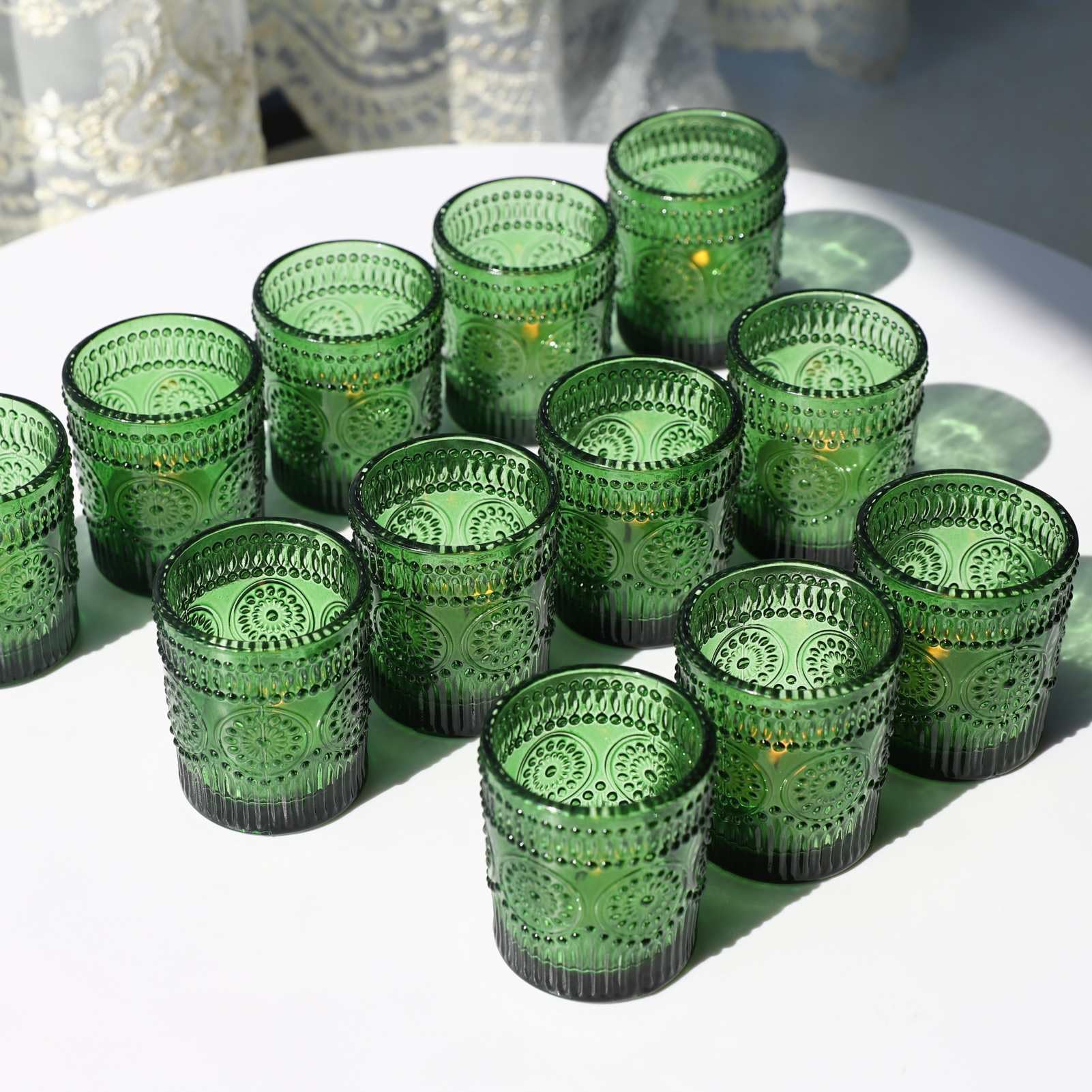 Vohocandle Grüne Teelichthalter im 12er-Set, Votivkerzenhalter für die Tischdekoration bei Hochzeiten, Teelichthalter für den Urlaub