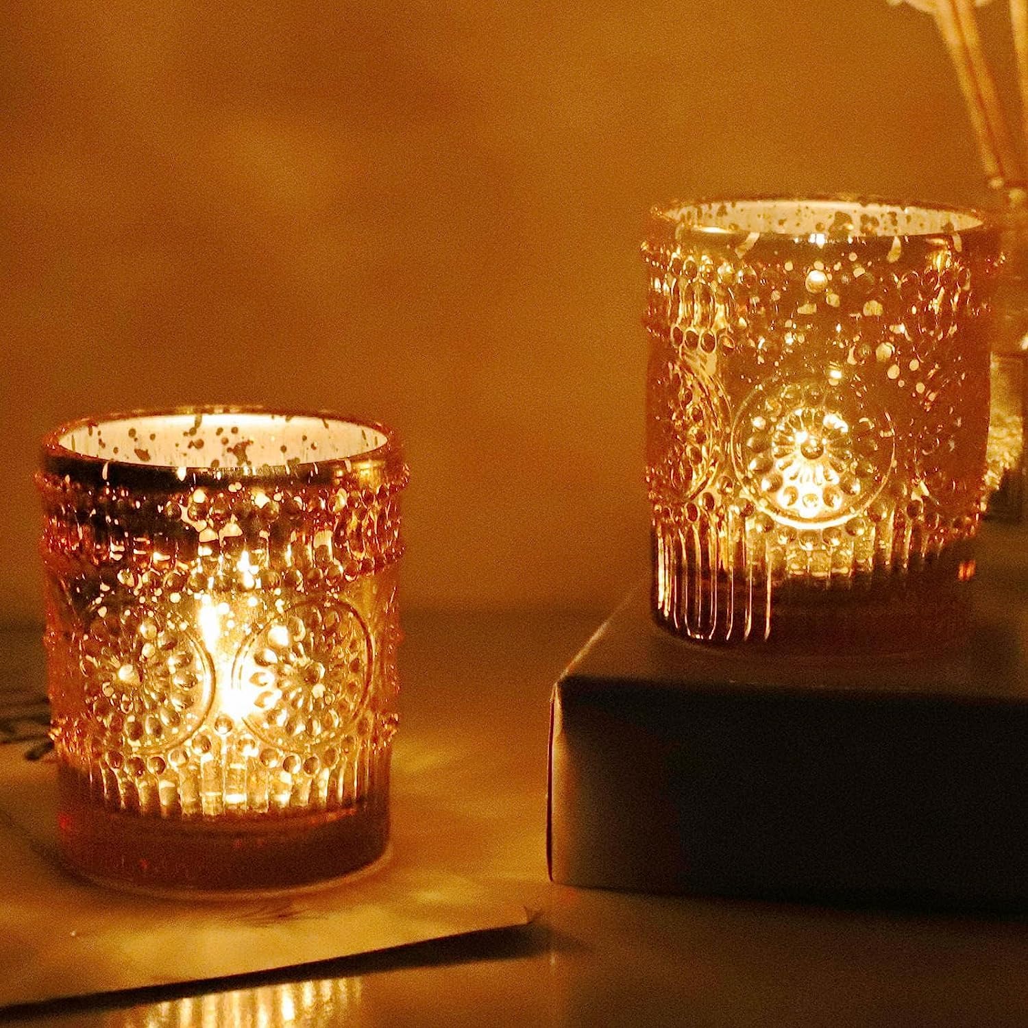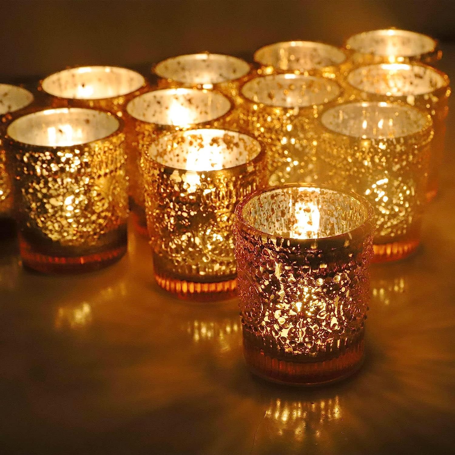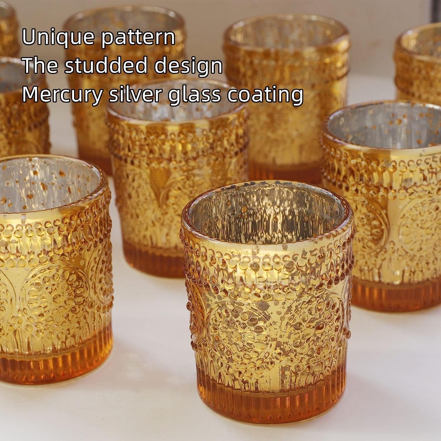 Vohocandle Teelichthalter Gold, 12er-Set Kerzenhalter Glas, Grosspackung für den Tischaufsatz bei Hochzeiten, Teelichthalter aus Quecksilberglas (5.5cm x 6.5cm, B/H)