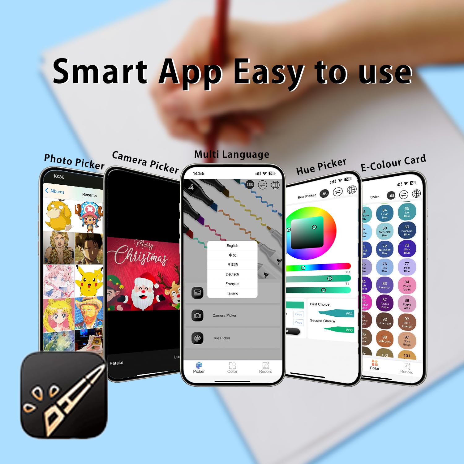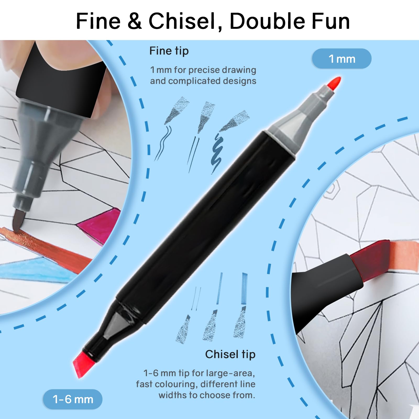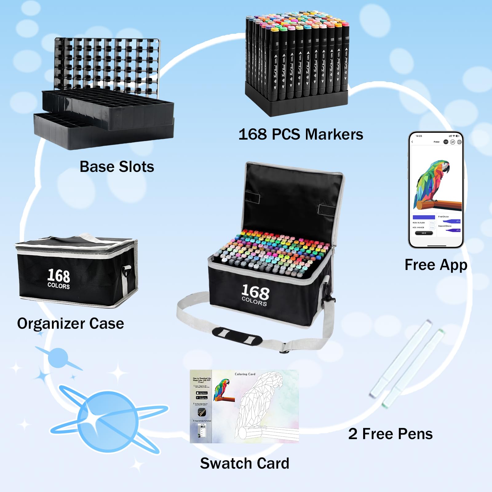 Vokiuler 168+2 Farben Marker Stifte, Alkohol Marker Set mit Coloring App, Pinsel Twin Art Marker Set für Erwachsene und Künstler, Mit Schwarzer Tragetasche