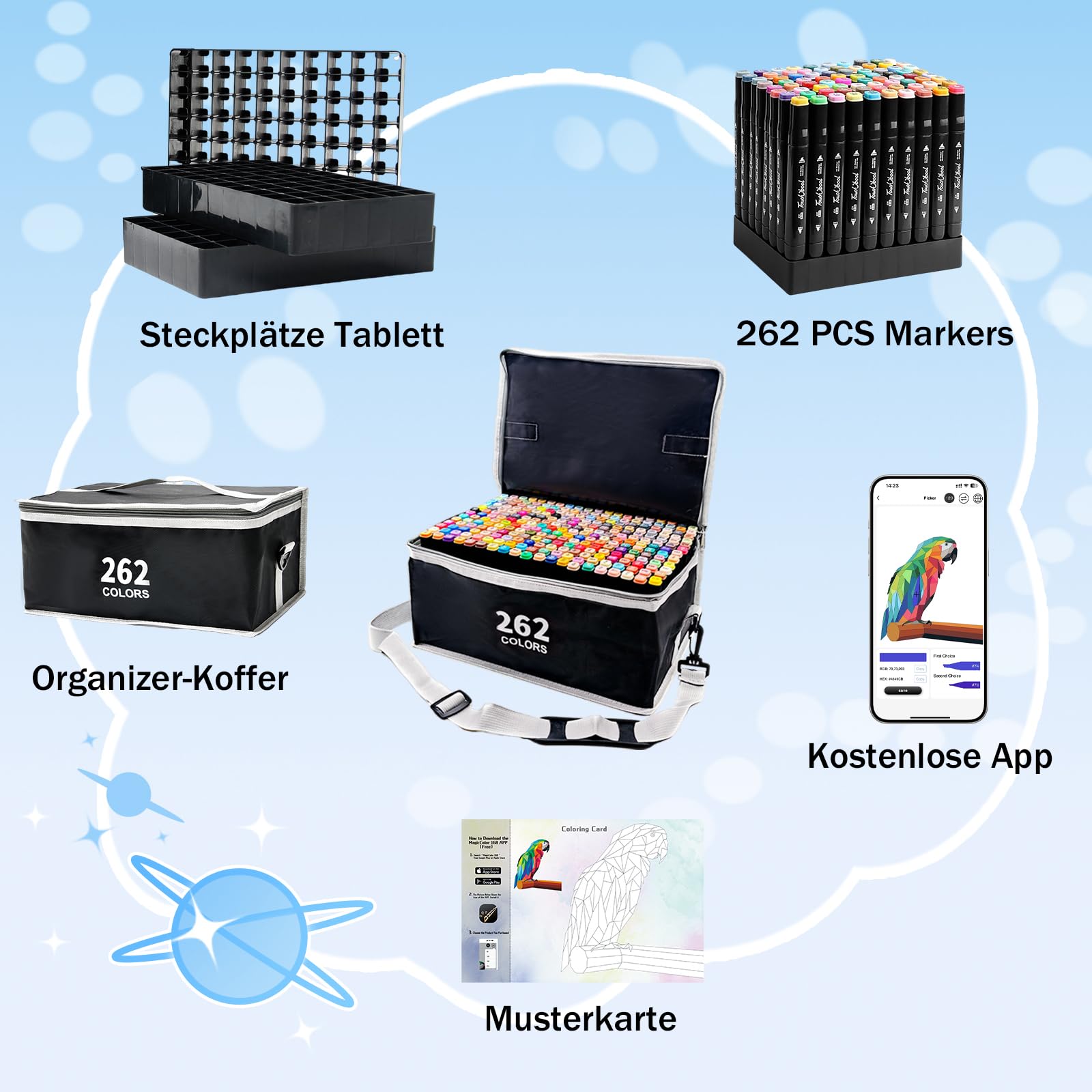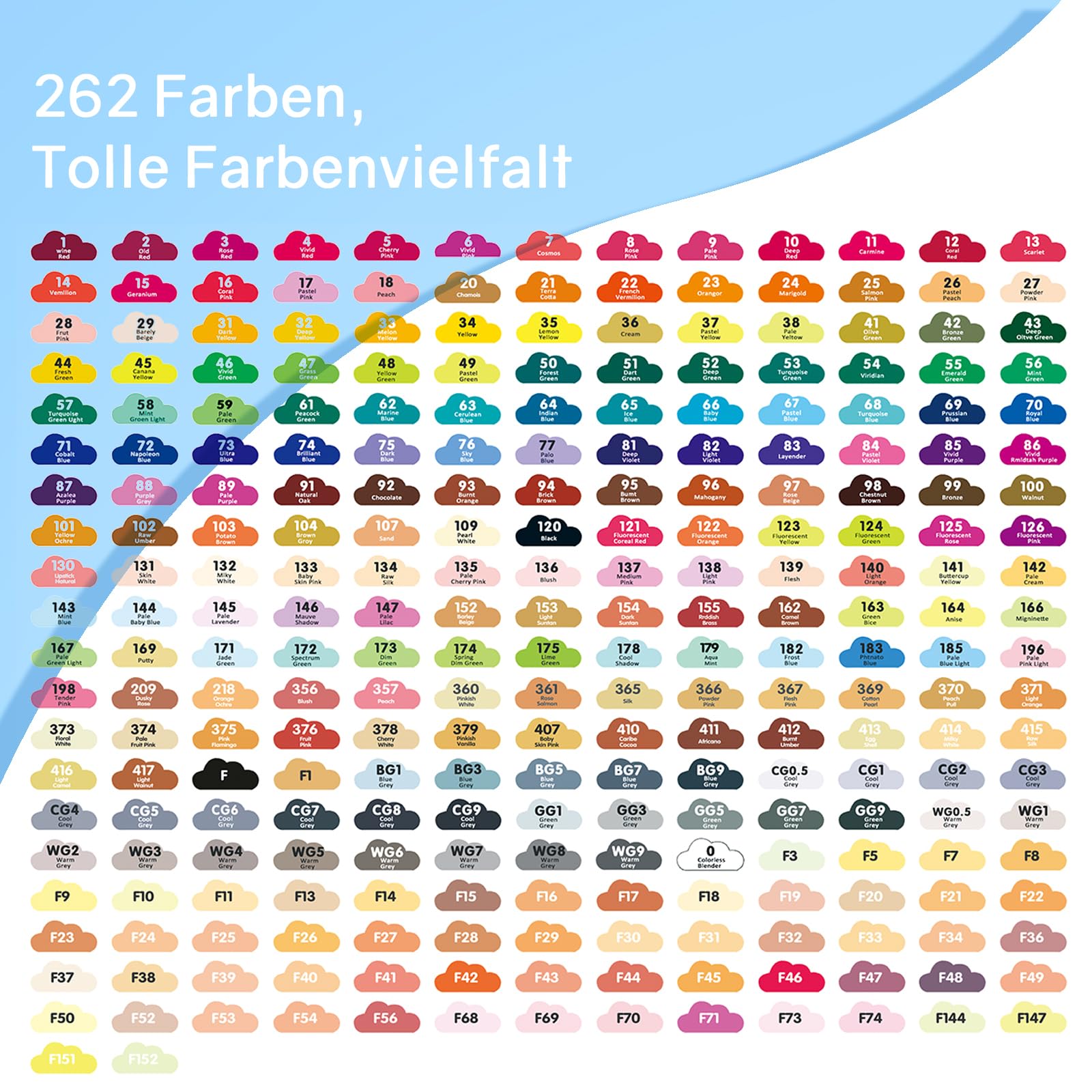 Vokiuler 262 Farben Marker Stifte Set, Alkohol Marker Set mit App, Twin Art Marker Set für Erwachsene, Künstler und Designer, Als Geschenk mit Tragetasche