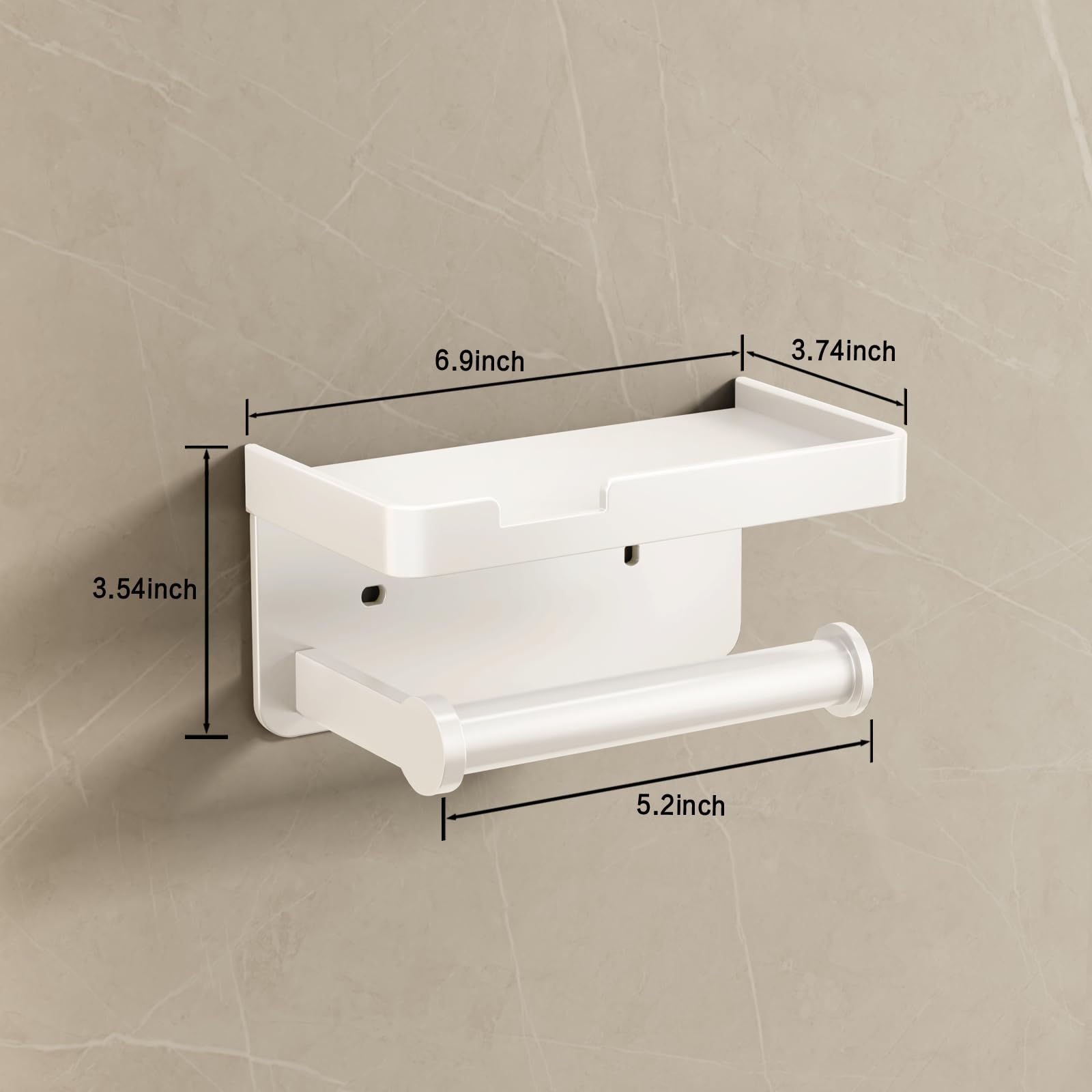 VOLDRA Toilettenpapierhalter Ohne Bohren mit Ablage, Selbstklebend Oder Schraubbar Klopapierhalter, Rostfrei & Multifunktional Badezimmer Klorollenhalter Wc Papier Halterung(Weiss)