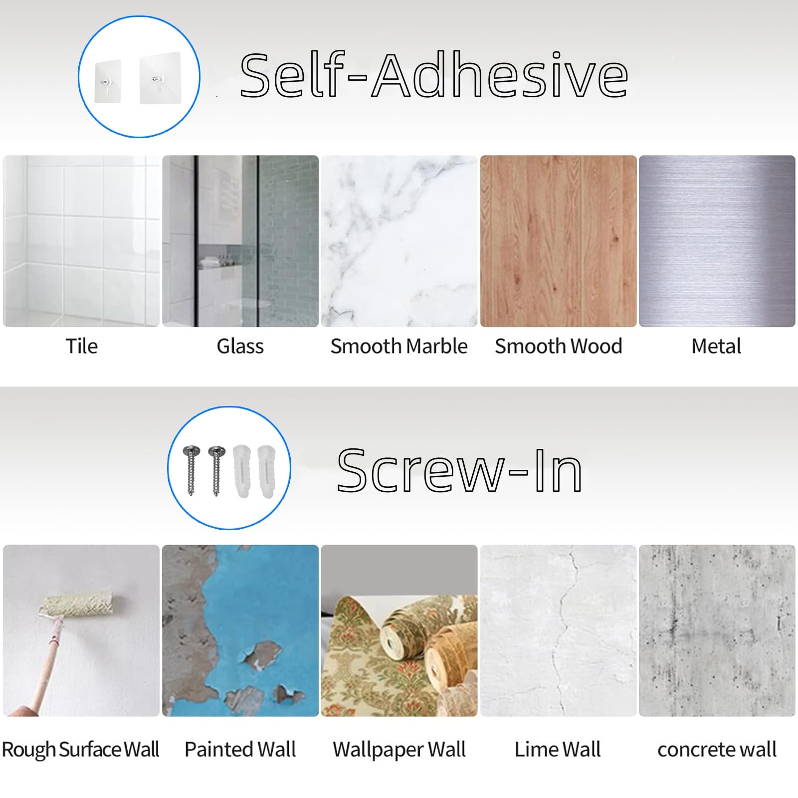 - 【???????????????????????????? ???????? ????????????????????????????????????????????????】 Selbstklebend oder bohrend einschraubbar, wir kommen mit Klebeaufkleber und Schrauben. 1: Selbstklebend ohne Bohren: Ziehen Sie einfach den Klebefilm ab und kleben Sie ihn auf eine glatte Wand. 2: Gebohrte Löcher: Bei unebenen Oberflächen bohren Sie Löcher und verwenden Schrauben für die Montage. Beide Installationsmethoden verleihen Ihrem Badezimmer in wenigen Minuten Eleganz und Komfort.