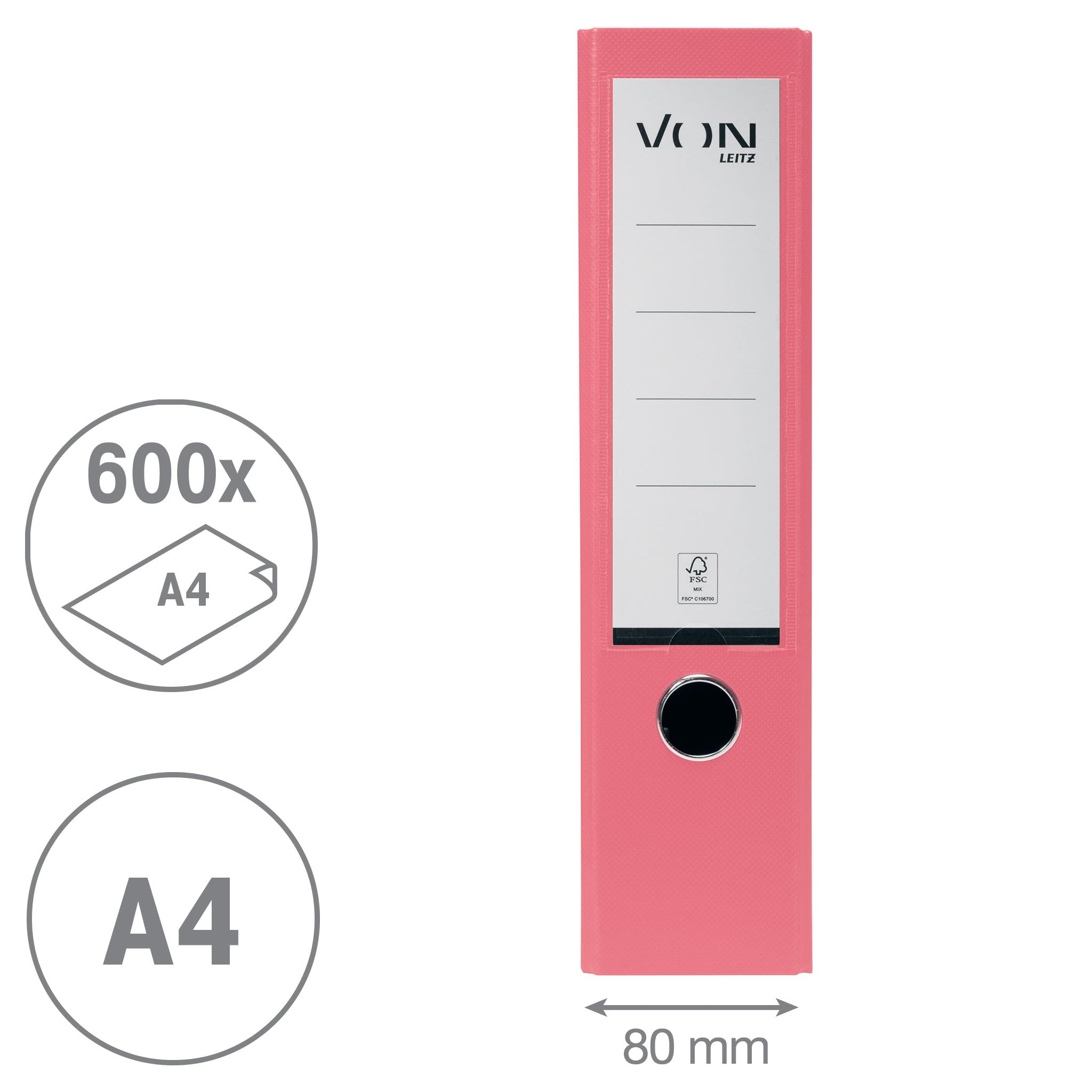 VON Leitz 5er Pack Ordner A4, Karton mit Kunststoffeinband, 80 mm Rückenbreite, Für 600 Blatt, FSC-zertifizierter Karton, Aktenordner, Für Schule, Studium & Zuhause, Pink, 10551021