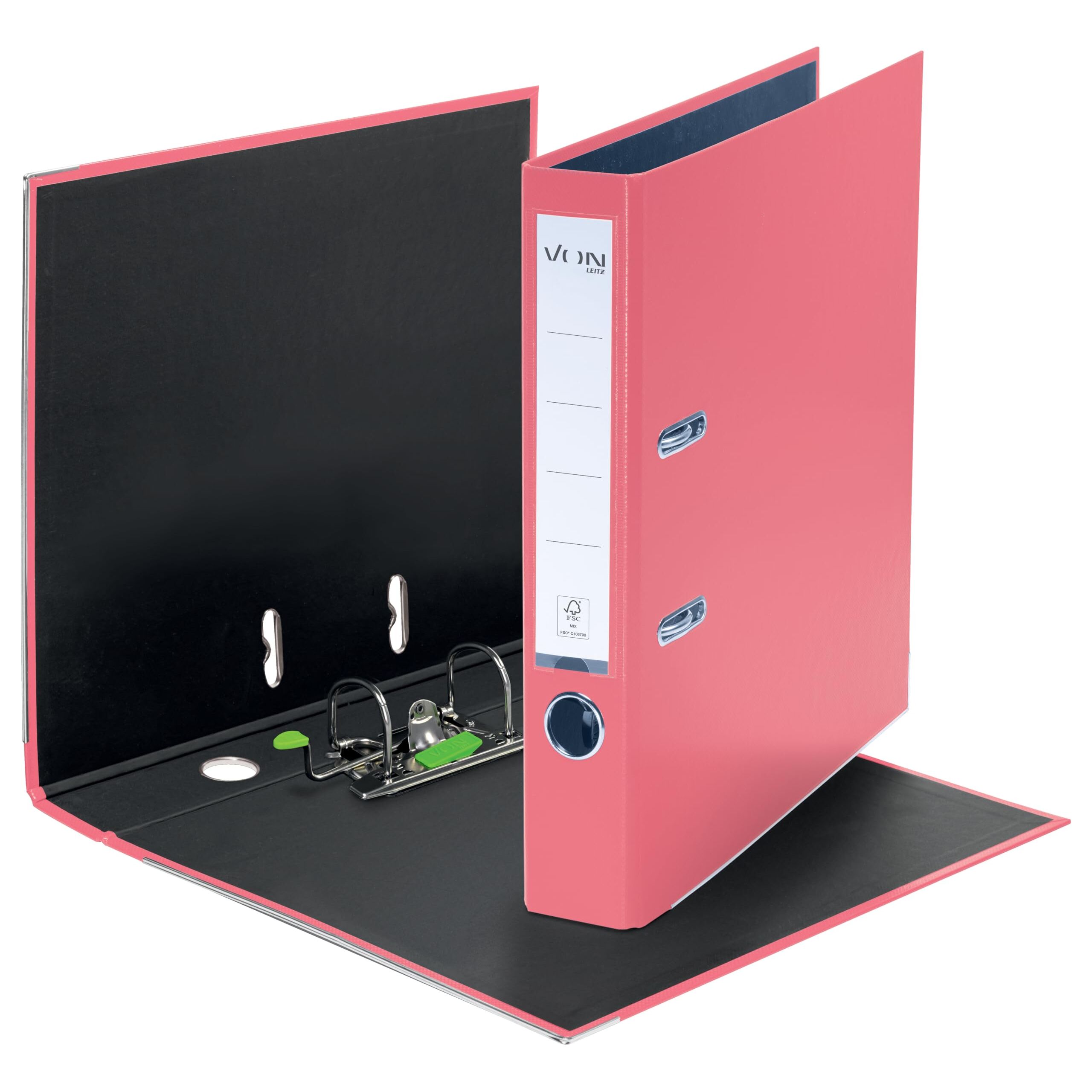 VON Leitz 5er Pack Ordner A4, Karton mit Kunststoffeinband, 50 mm Rückenbreite, Für 350 Blatt, FSC-zertifizierter Karton, Für Schule, Studium & Haushalt, Pink, 10561021