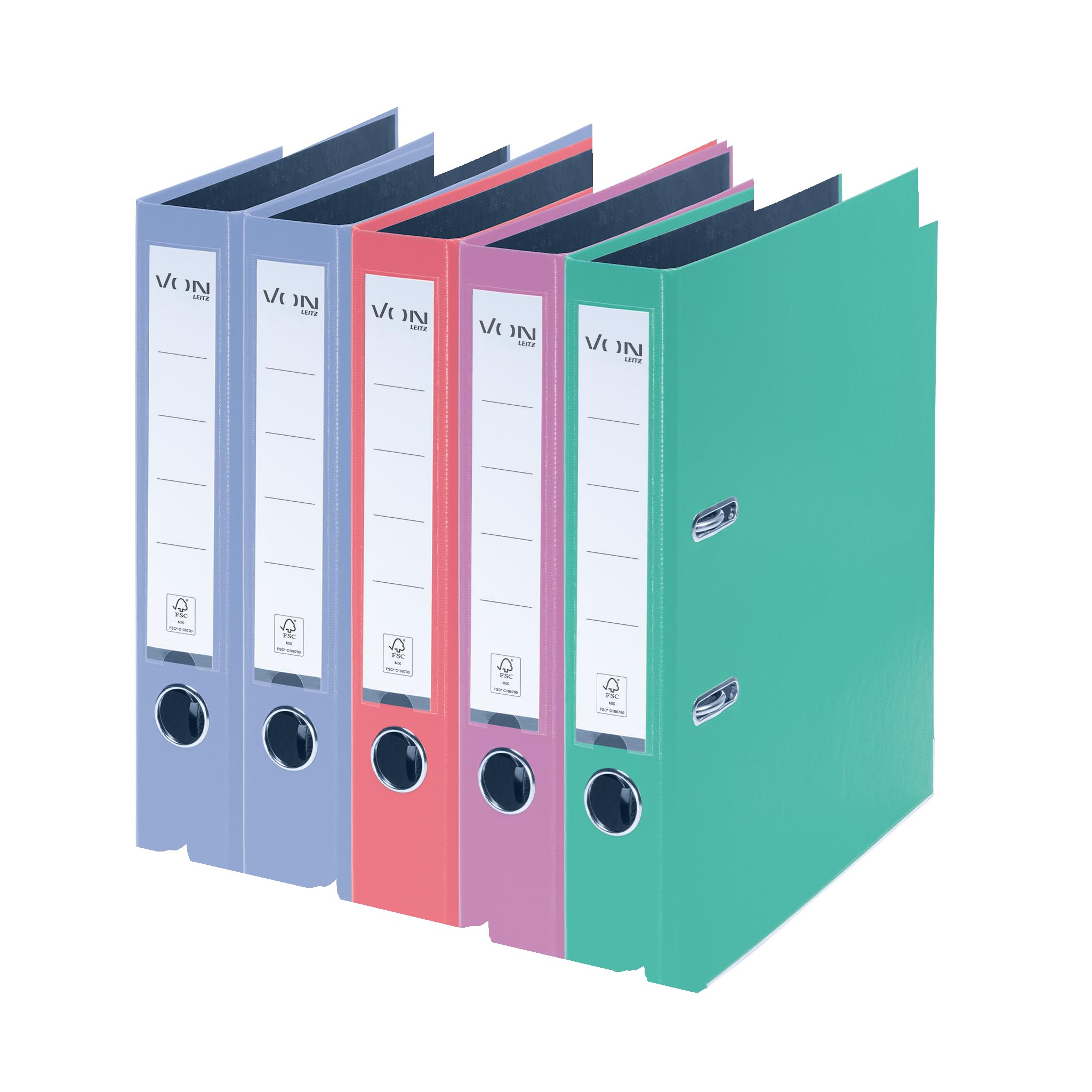 VON Leitz 5er Pack Ordner A4, Karton mit Kunststoffeinband, 50 mm Rückenbreite, Für 350 Blatt, FSC-zertifizierter Karton, Für Schule, Studium & Haushalt, Mehrere Farben, 10561099