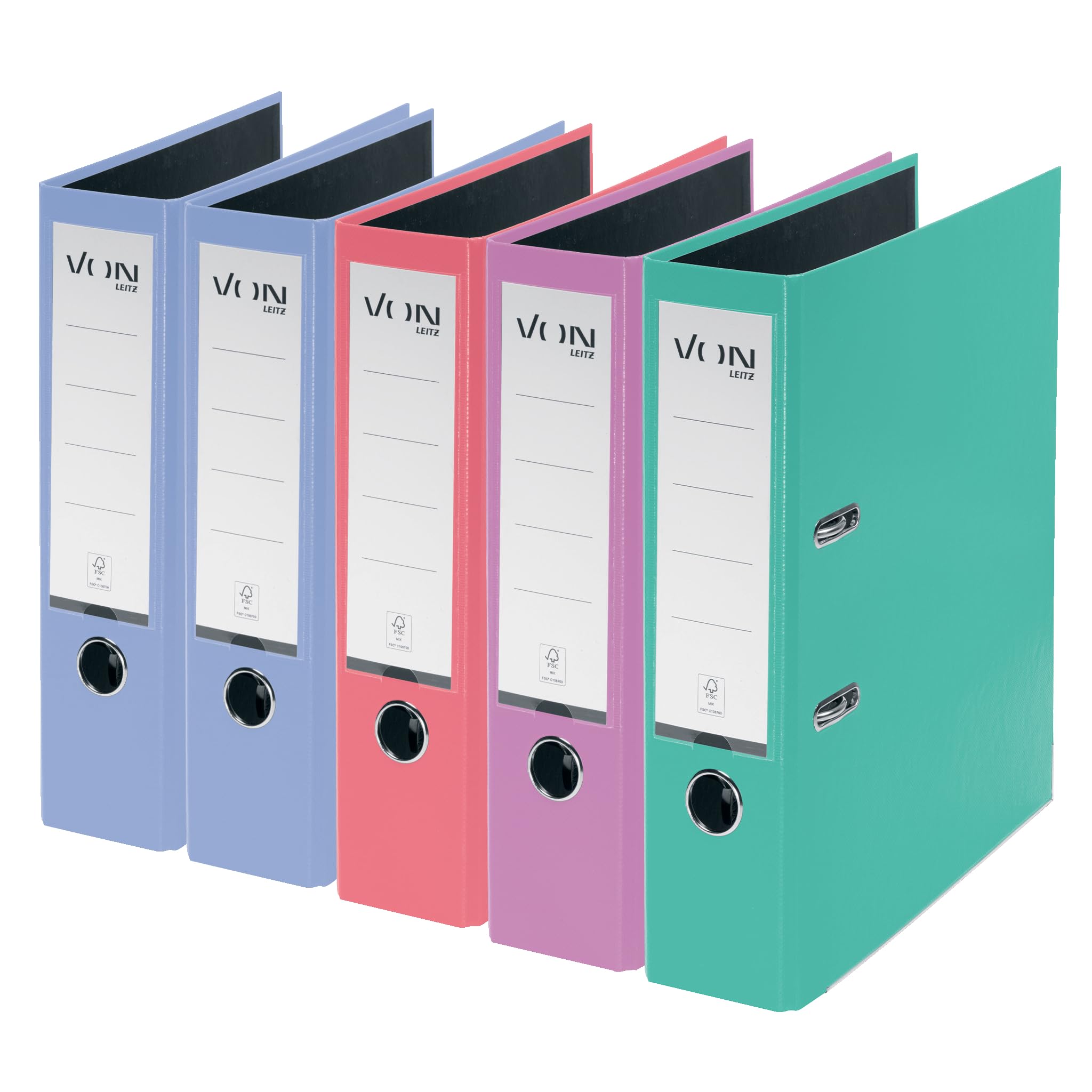 VON Leitz 5er Pack Ordner A4, Karton mit Kunststoffeinband, 80 mm Rückenbreite, Für 600 Blatt, FSC-zertifizierter Karton, Aktenordner, Für Schule, Studium & Zuhause, Mehrere Farben, 10551099