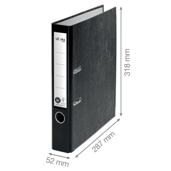 VON Leitz Ordner A4, 25er Pack, 100 % Recyclingpapier, 50 mm Rückenbreite, VON Leitz Leitz, Für 350 Blatt, Blauer Engel & FSC-zertifiziert, Für Schule, Studium & Zuhause, Gelb, 10540015