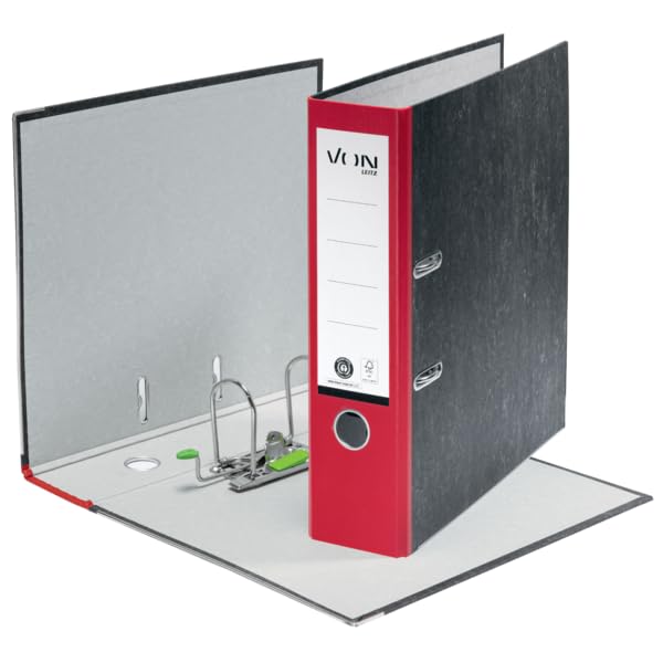 VON Leitz Ordner A4, 20er Pack, 100 % Recyclingpapier, 80 mm Rückenbreite, VON Leitz Leitz, Für 600 Blatt, Blauer Engel & FSC-zertifiziert, Für Schule, Studium & Zuhause, Rot, 10530025