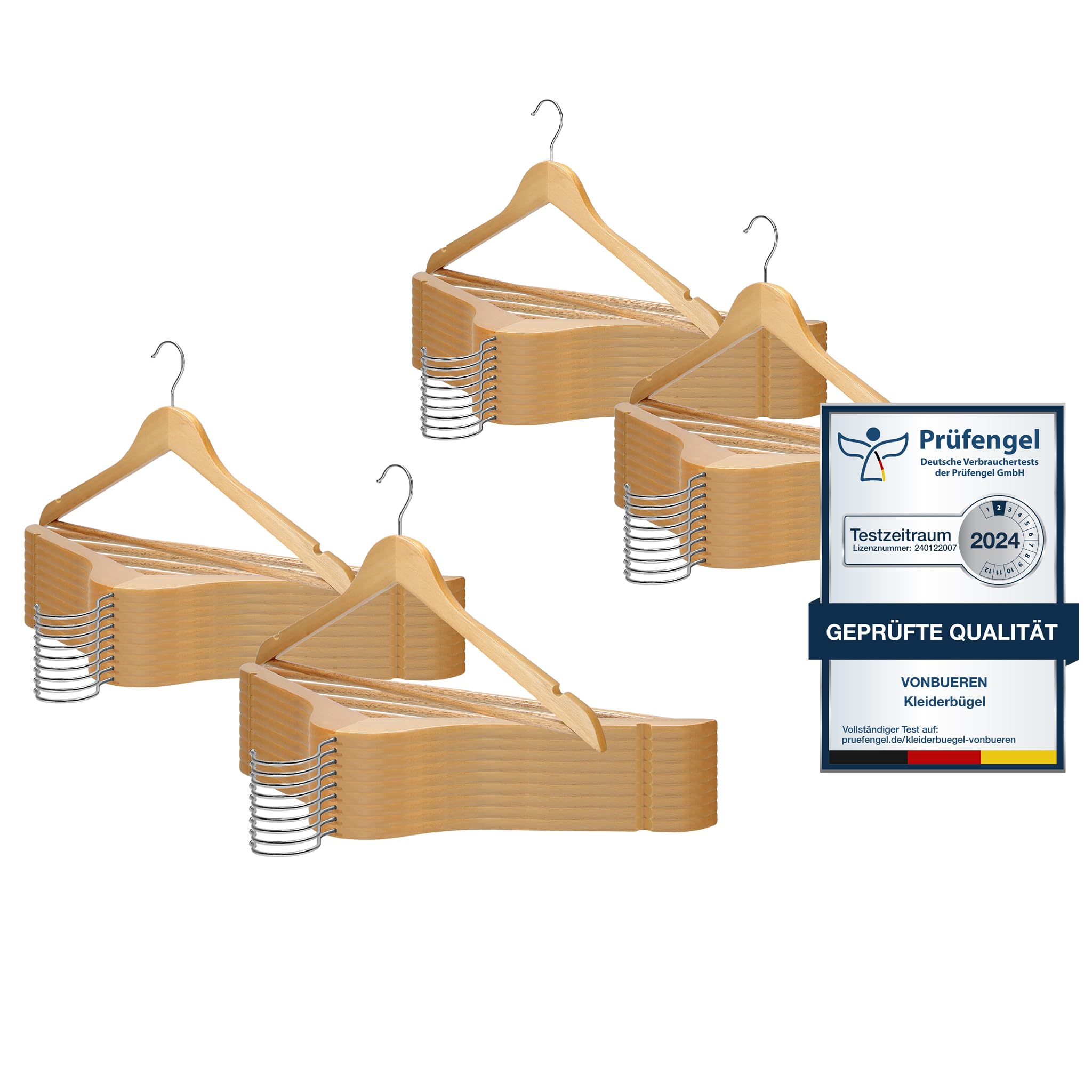VonBueren Kleiderbügel Holz | 44,5 x 22 cm je Bügel / Holzbügel | Holzkleiderbügel | 360 Grad drehbar: