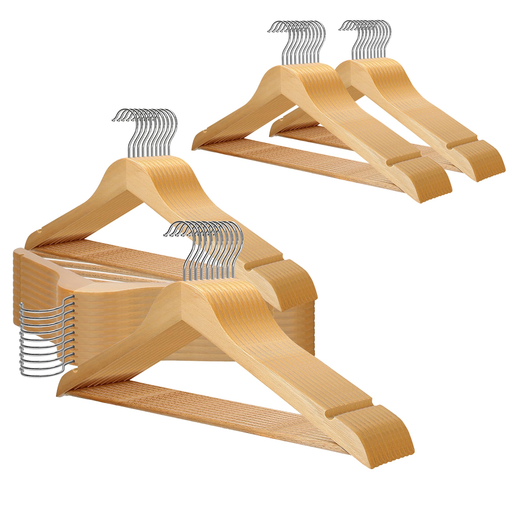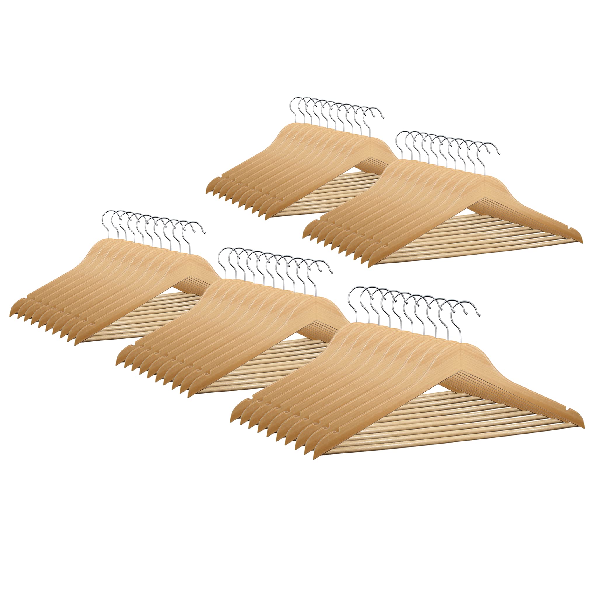 VonBueren 50 x Kleiderbügel Holz | 44,5 x 22 cm je Bügel/Holzbügel | Holzkleiderbügel | 360 Grad drehbar | Hangers Clothes Wooden