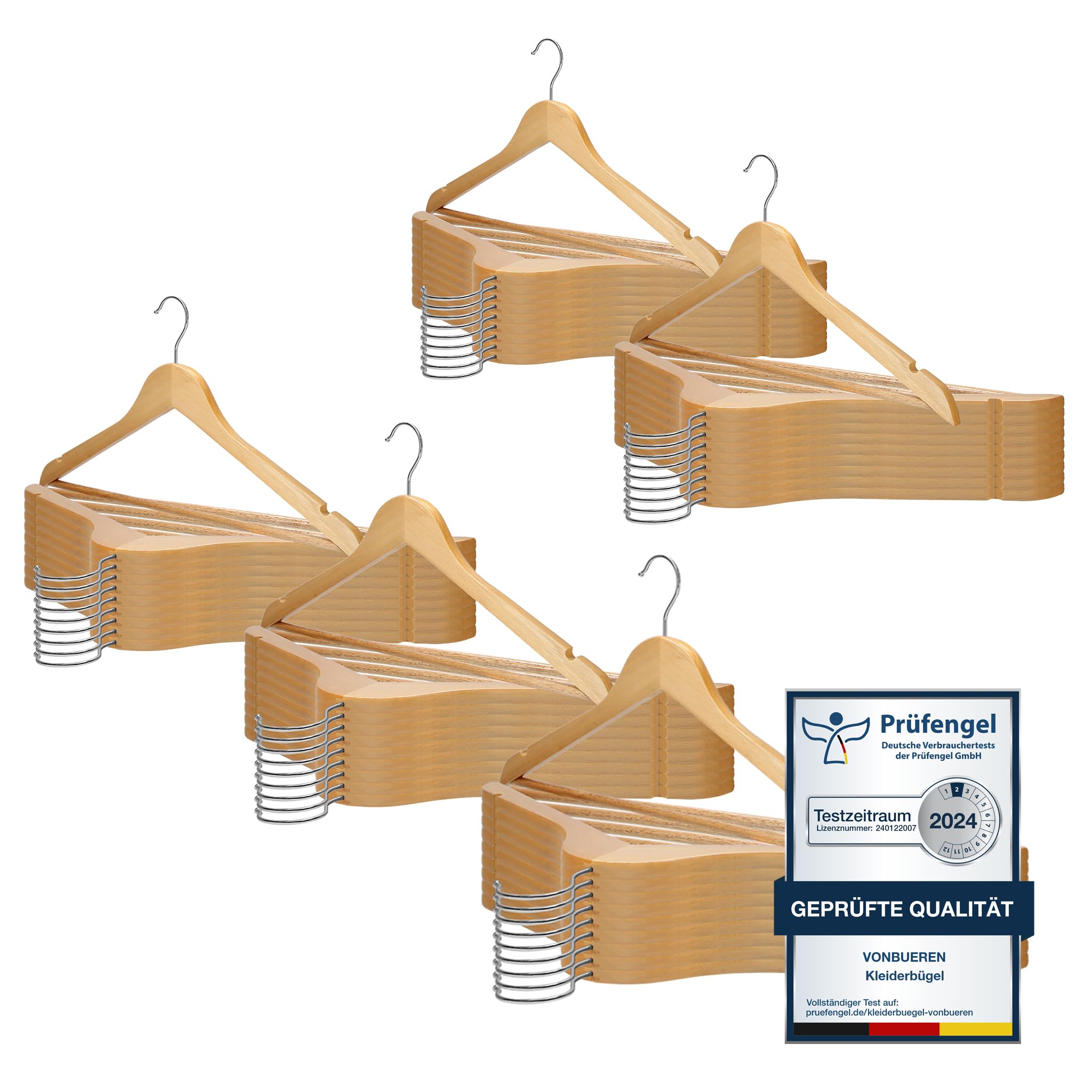 VonBueren Kleiderbügel Holz | 44,5 x 22 cm je Bügel / Holzbügel | Holzkleiderbügel | 360 Grad drehbar: