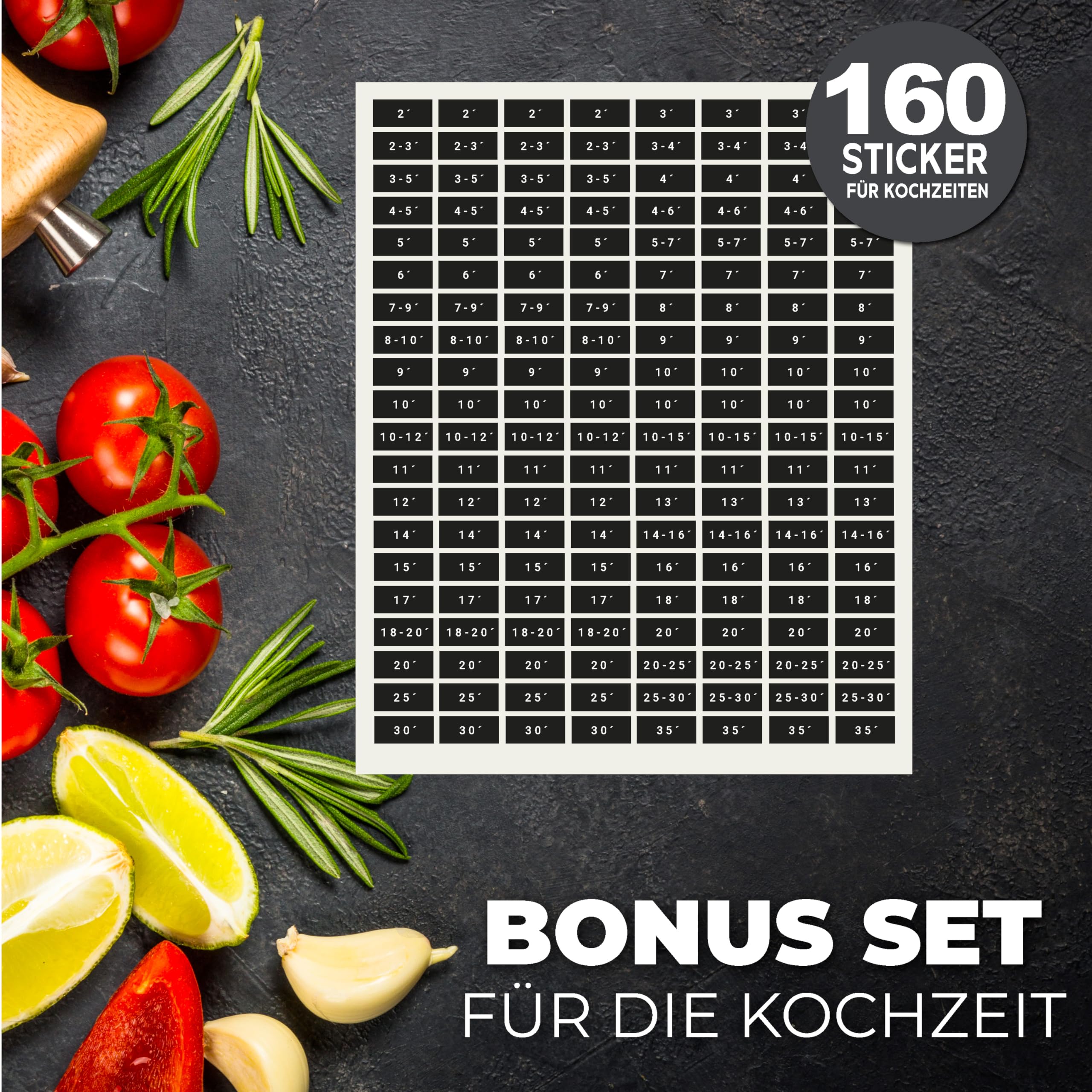 Küche - leicht gemacht 288 selbstklebende, wasserfeste & ölresistente Vorrtatsetiketten. Je 144 runde Aufkleber (5,8 cm Ø) & 144 rechteckige (6 x 7,5 cm) Etiketten für Vorräte, gewürzetiketten aufkleber rund selbstklebend gewürzaufkleber runde minimalistisch haushaltsetiketten gewürz etikett küchenaufkleber gewürzgläser vorratsdosen wasserfest küchenorganisation ettiketten weiss küchenetiketten gläser spice labels Homety - Home & Living 288 Vorratsaufkleber - minimalistisch EIN BLICKFANG IN DEINER KÜCHE! Passend für Gläser und Dosen mit einer Länge von mindestens 6cm und einer Breite von 4cm bzw. ab einem Füllvolumen von 200ml und grösser QUALITÄT, DIE HÄLT WAS SIE VERSPRICHT: wasserfest, ölresistent, selbstklebend, reissfest, leicht aufzukleben Für Vorratsbehälter mit unterschiedliche Grössen: Entscheide zurerst welches Lebensmittel in welches Glas bzw in welche Dose kommt (da, z.B. 1 Kg Nudeln mehr Volumen benötigt als 1Kg Zucker) Wir sind ein deutsches Familienunternehmen und legen höchste Ansprüche an die Qualität unserer Waren. Wir stehen für Kundenfreundlichkeit und Qualität.