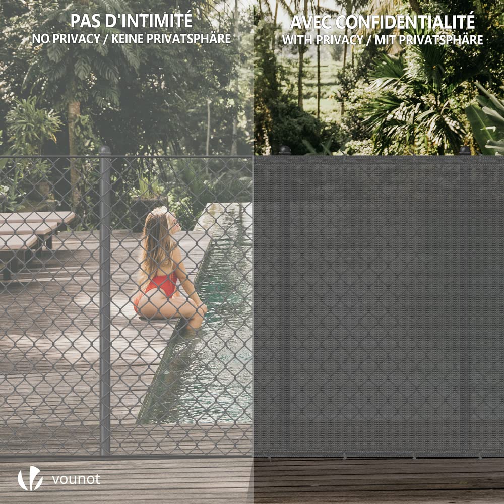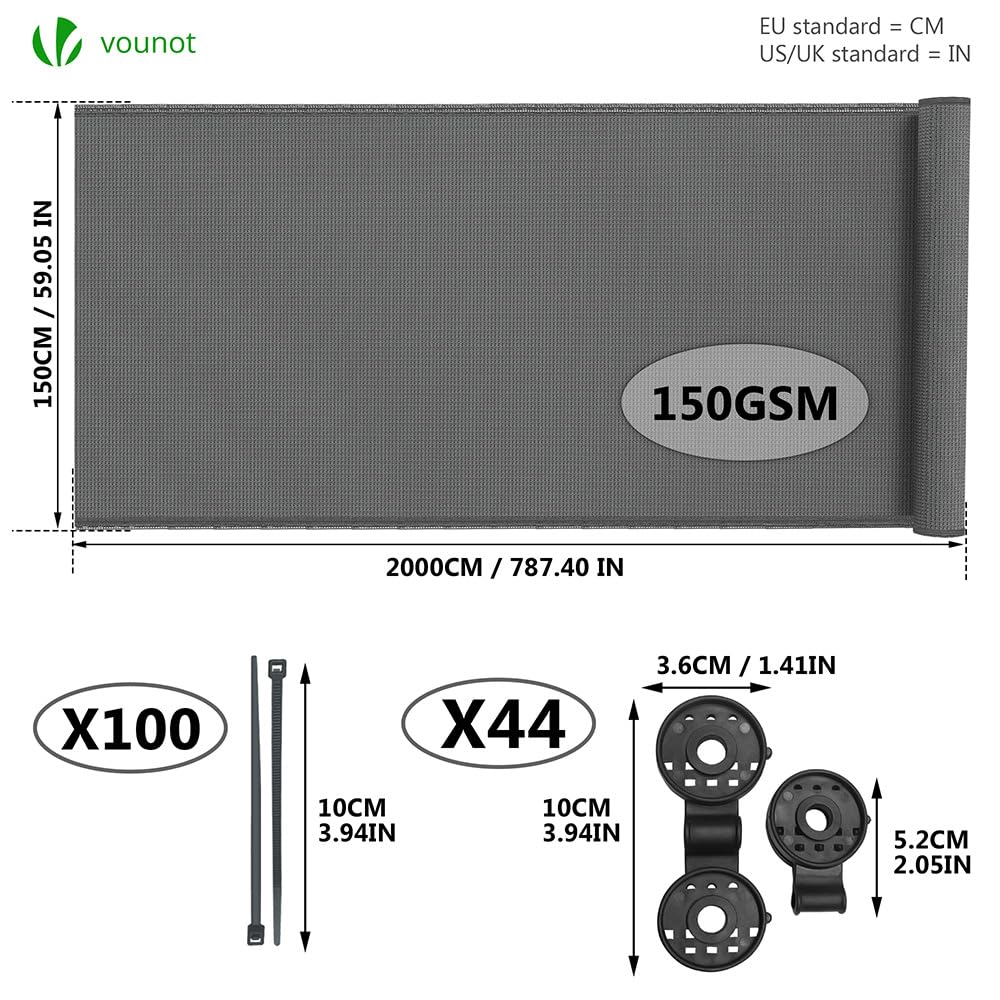 VOUNOT® Zaunblende 1.5×20m, Sichtschutz Zaun 150 g/m² HDPE Schattiernetz, Windschutz UV-resistent Reissfest, mit Löcher und Kabelbinder, Grau
