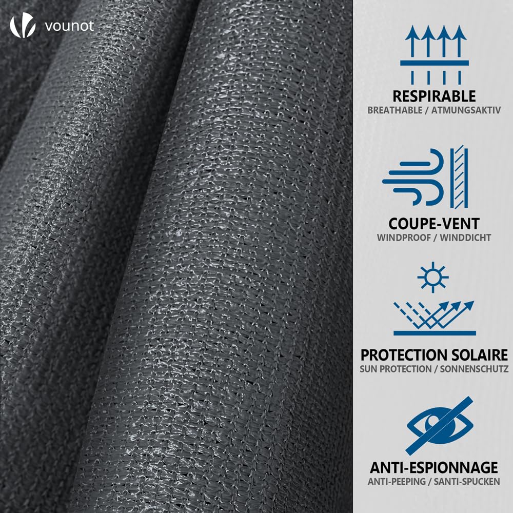 VOUNOT® Zaunblende 1.5×20m, Sichtschutz Zaun 150 g/m² HDPE Schattiernetz, Windschutz UV-resistent Reissfest, 85% Beschattungsgrad, mit Löcher und Kabelbinder, Anthrazit