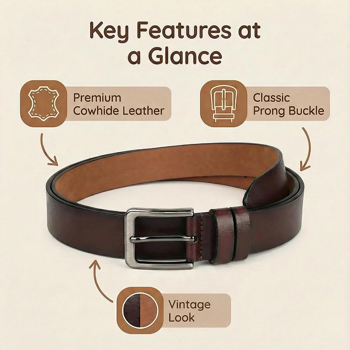 Der VRLEGEND Ledergürtel für Herren ist ein vielseitiges Accessoire, das sowohl für den Business-Alltag als auch für die Freizeit perfekt geeignet ist. Dieser klassische Gürtel aus hochwertigem Vollrindleder überzeugt mit seiner robusten Verarbeitung und zeitlosen Optik. Mit einer Breite von 40 mm bietet er die ideale Balance zwischen elegantem Stil und praktischer Funktionalität. Der Gürtel ist in verschiedenen Längen von 110 bis 175 cm erhältlich und passt sich somit unterschiedlichen Taillenumfängen an. Die Metallschnalle im Retro-Design verleiht dem Gürtel einen besonderen Charakter und macht ihn zum perfekten Begleiter für Jeans sowie Business-Hosen. Das echte Leder ist langlebig und entwickelt mit der Zeit eine individuelle Patina. Für die Pflege wird Handwäsche empfohlen, um die Qualität des Materials langfristig zu erhalten. Dieser Herrengürtel ist speziell für erwachsene Männer konzipiert und ergänzt jede Garderobe mit seinem klassischen, maskulinen Stil.