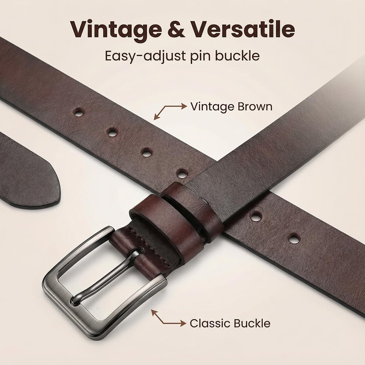 VRLEGEND Ledergürtel Herren 110-175cm Gürtel Leder Jean Business Metall Retro Jeansgürtel Vollrindleder 38mm Breite
