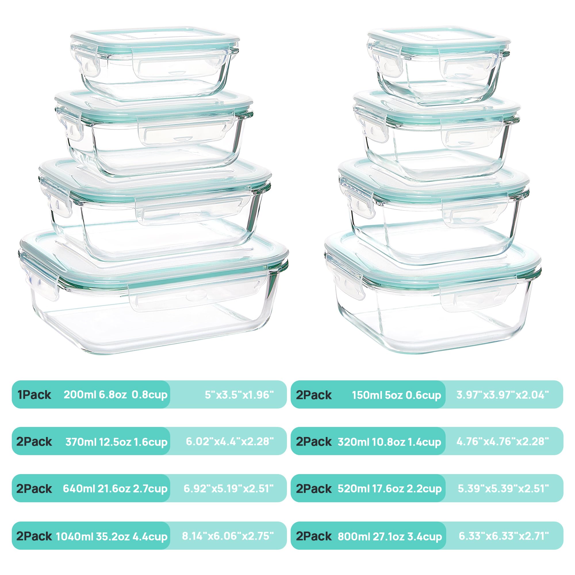 Vtopmart 15 Stück Meal Prep Boxen Glas, Glasdosen mit Deckel Set, Frischhaltedosen Glas mit Auslaufsicherer Verschlussdeckel, für Mikrowellen-, Gefrierschrank- und SpüLmaschinenfest