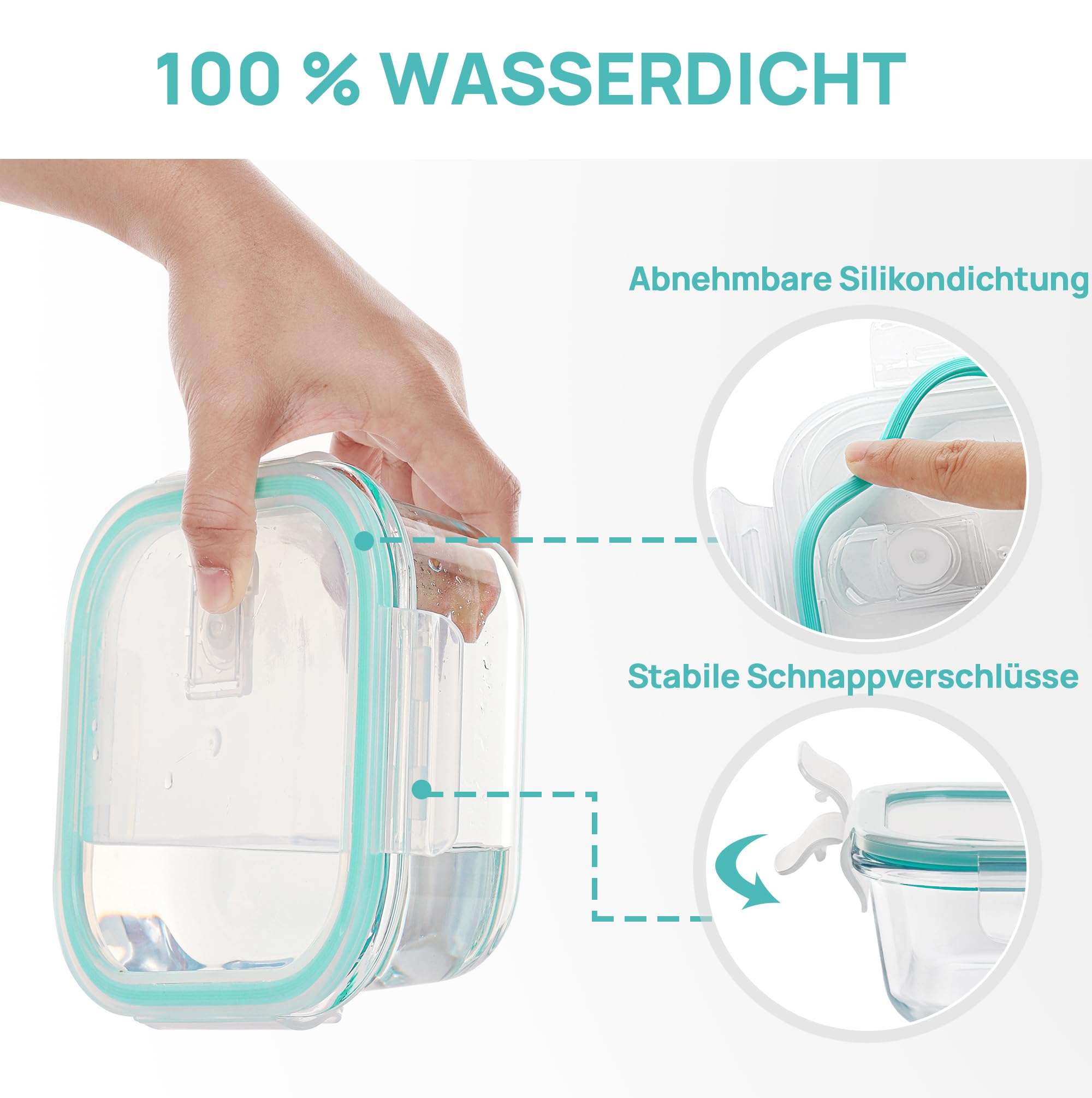 Vtopmart 8er Glasbehälter Mit Deckel, Glas Frischhaltedosen Mit Deckel, Meal Prep Boxen für Lebensmittel, Mikrowellen, BPA-Freie (Green)