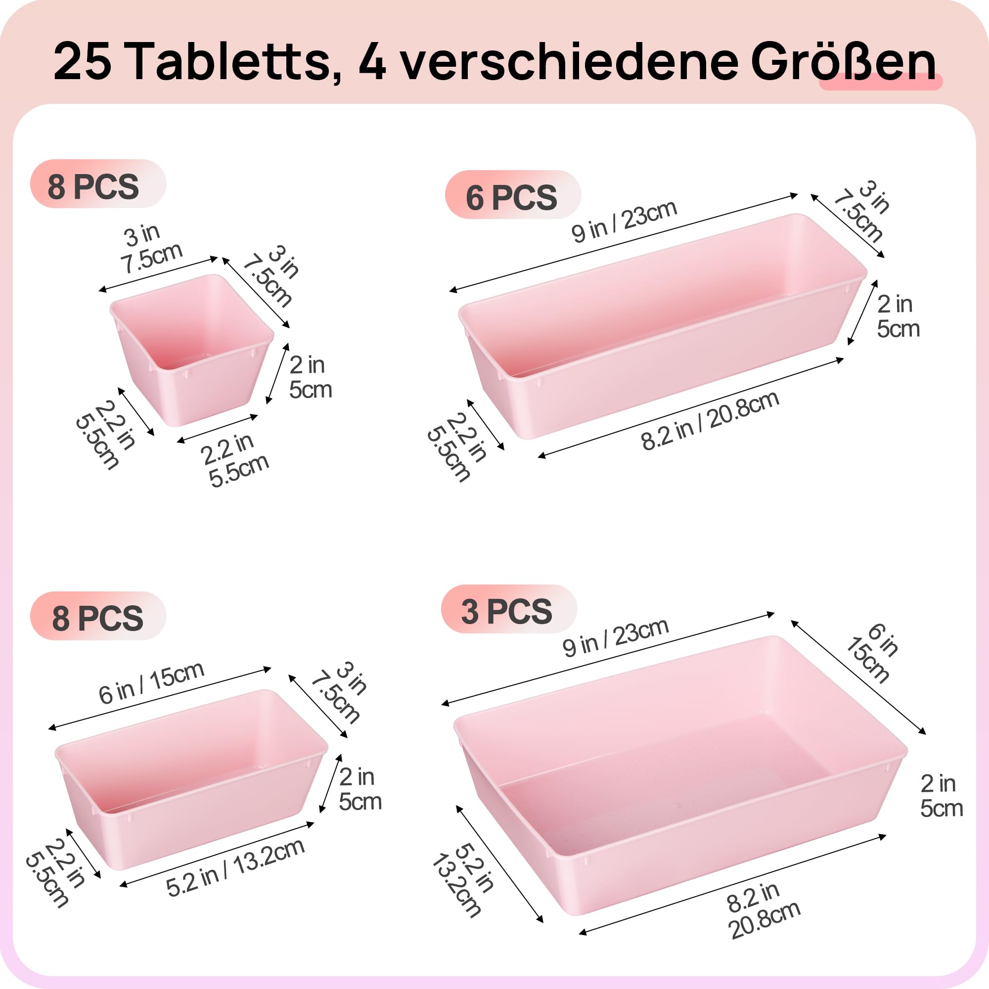 Vtopmart 25 Stücke Rosa Schubladen Organizer mit 4 Grössen, Make up Ordnungssystem, Schminktisch Organizer Einsetzbar für Makeup, Küchen, Badezimmer, Büro, Schminktisch
