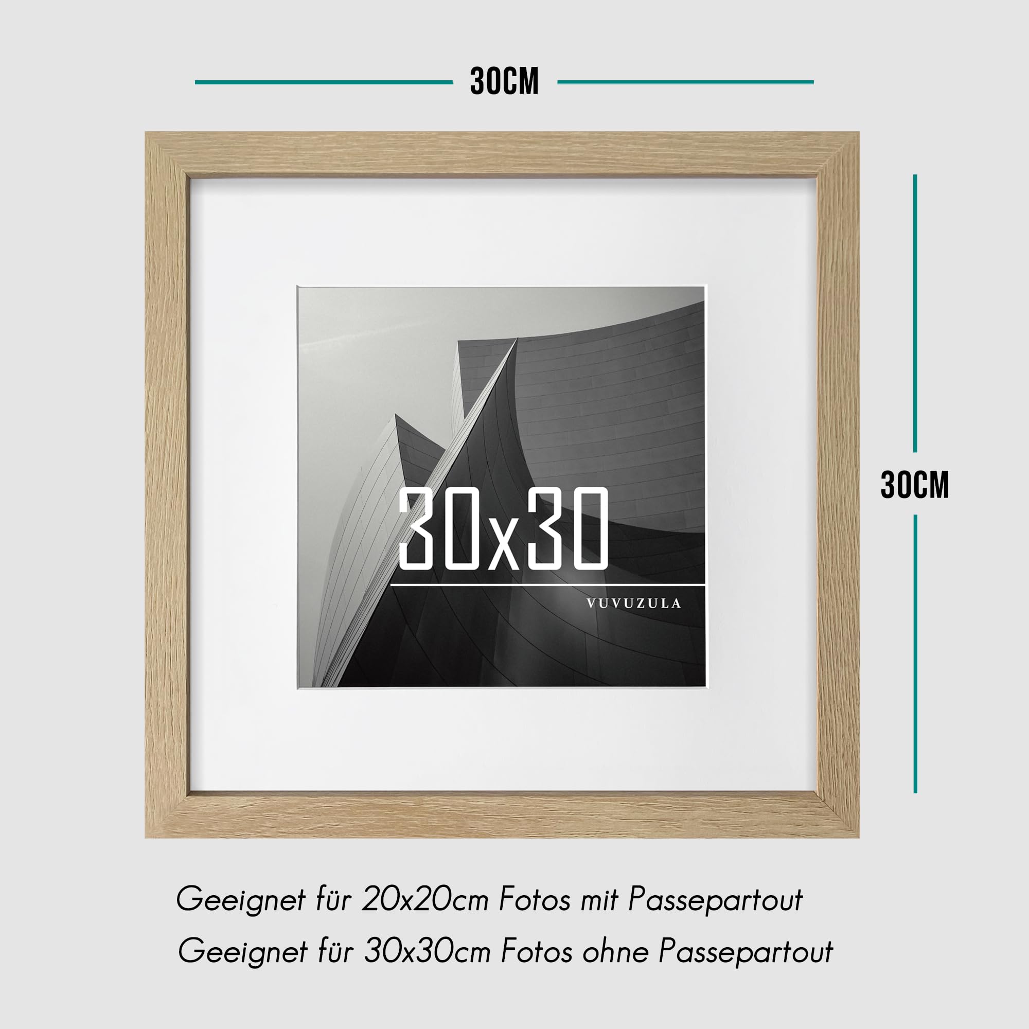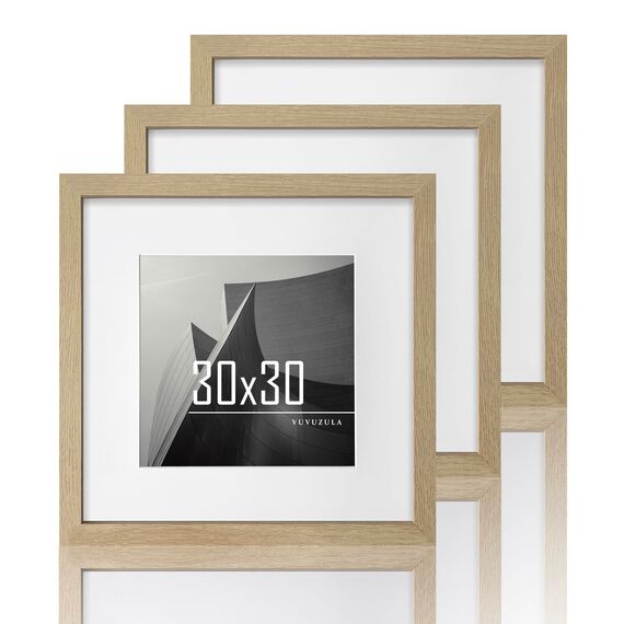 VUVUZULA Bilderrahmen 30x30cm Holz Quadratisch Fotorahmen Holzrahmen MDF Rahmen mit Passepartout 20x20cm Natur 3er Set