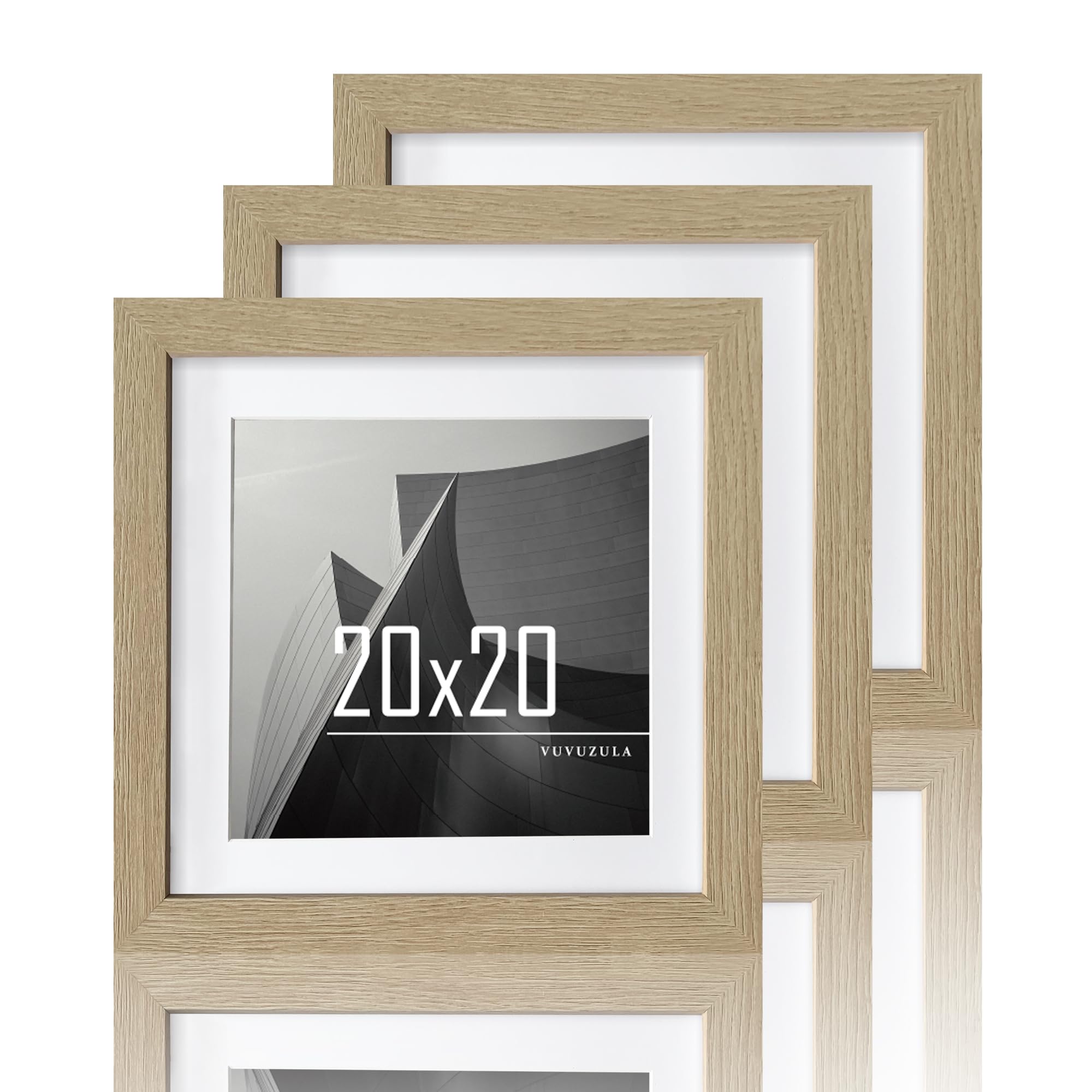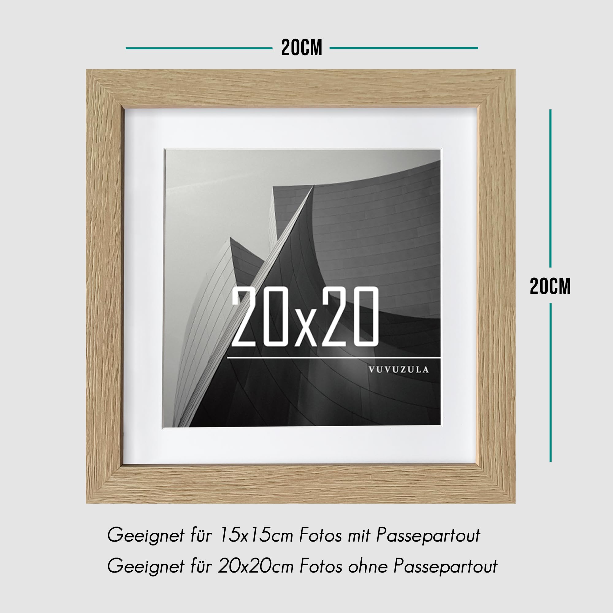 VUVUZULA Bilderrahmen 20x20cm Holz Quadratisch Fotorahmen Holzrahmen MDF Rahmen mit Passepartout 15x15cm Natur 3er Set