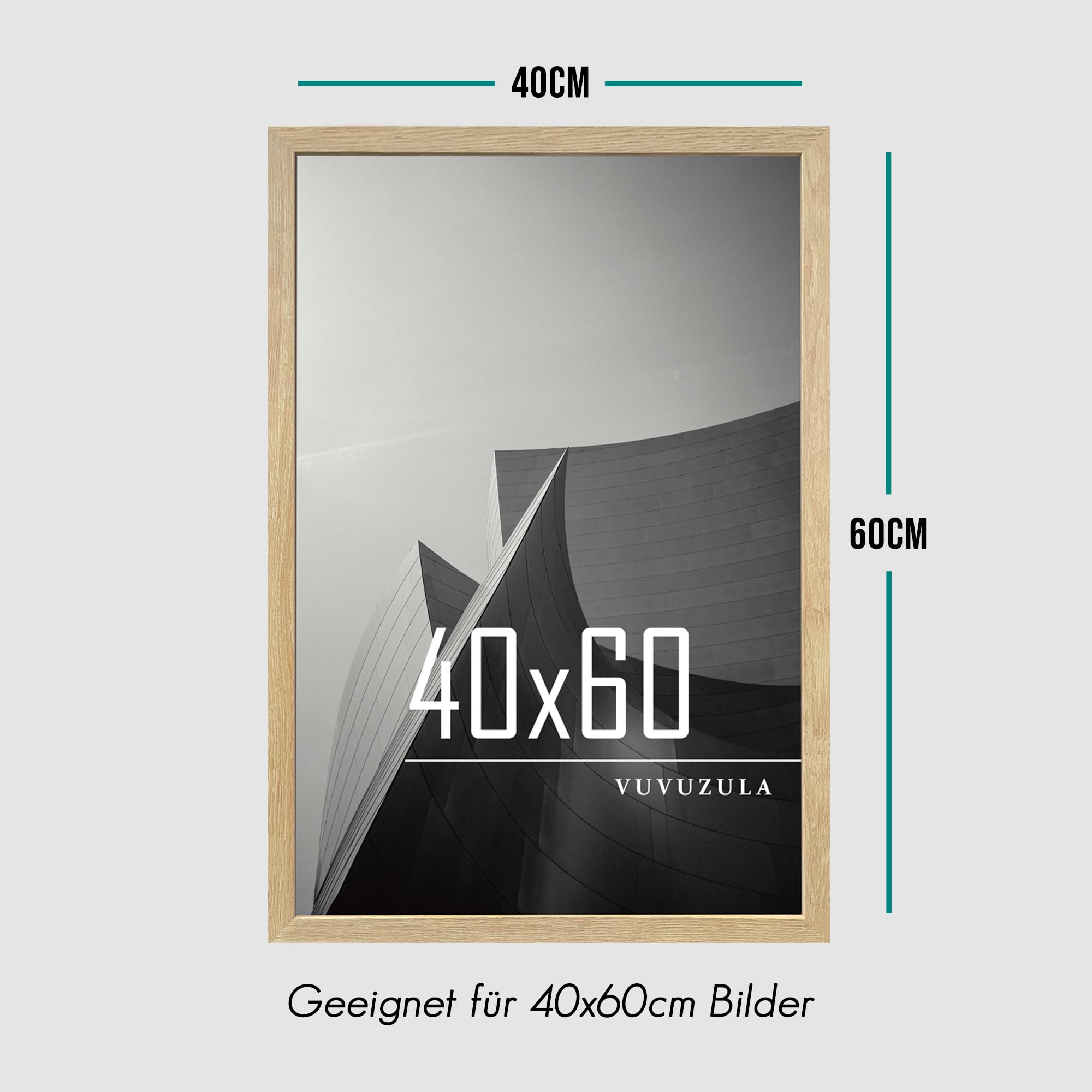VUVUZULA Bilderrahmen 40x60cm Holz Fotorahmen Holzrahmen MDF Rahmen 40x60cm Eiche Natur 3er Set