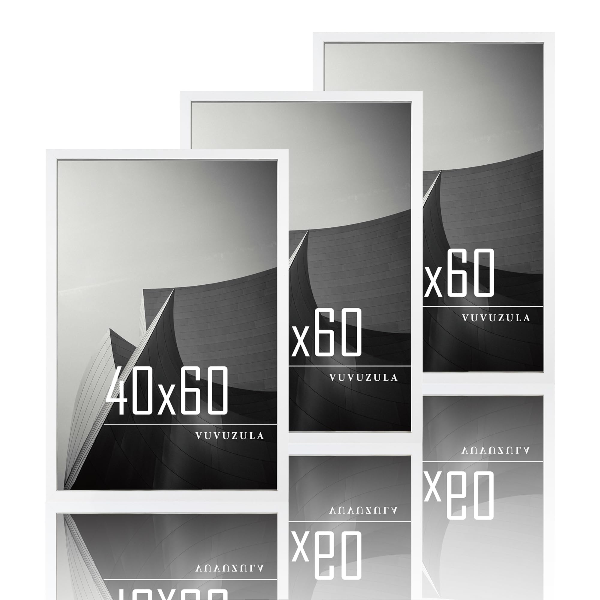 VUVUZULA Bilderrahmen 40x60cm Weiss Holz Fotorahmen Holzrahmen MDF Rahmen 40x60cm 3er Set