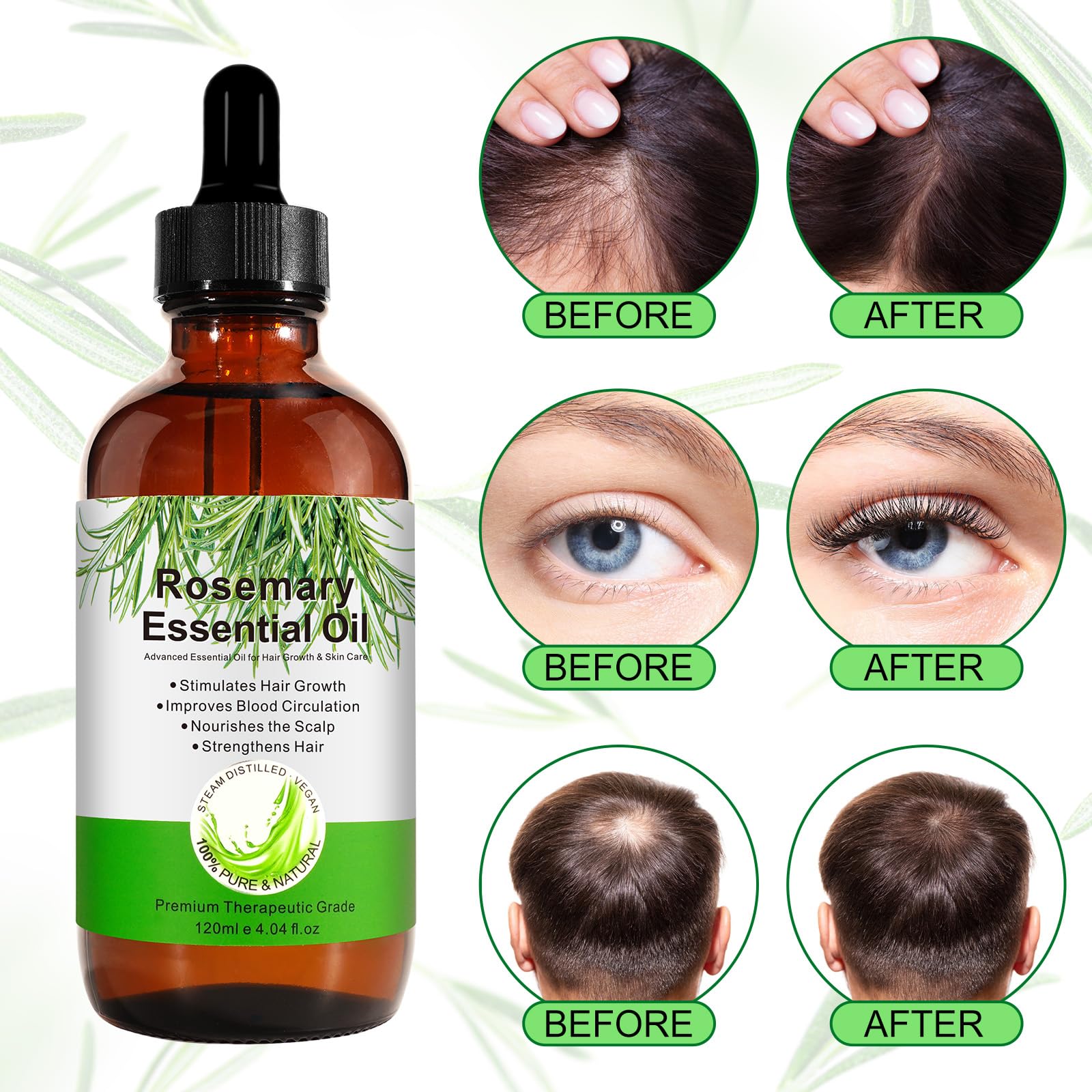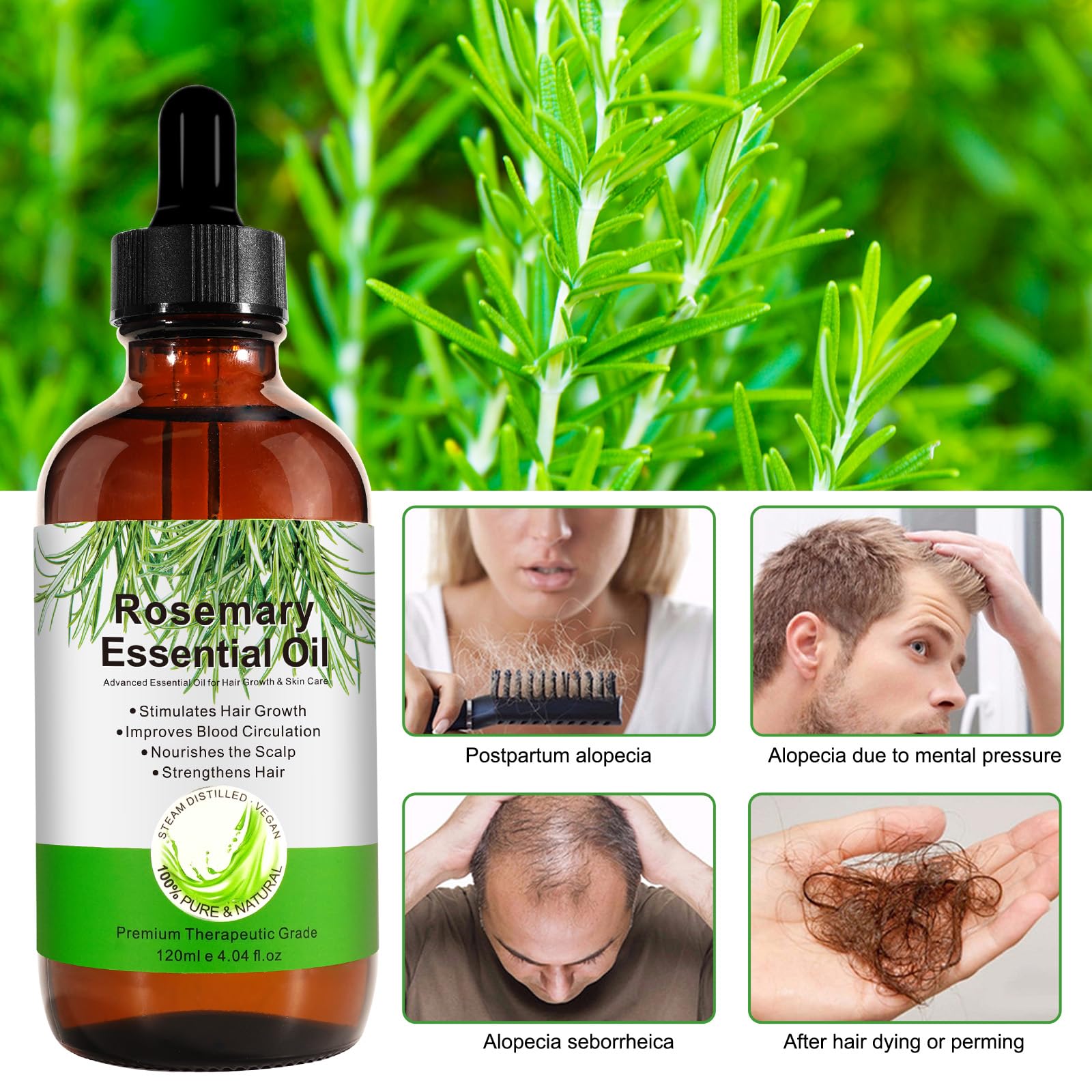 VXHDAG Rosmarinöl für Haarwachstum und Hautpflege – 100 reines ätherisches Rosmarinöl für Augenbrauen und Wimpern, pflegt die Kopfhaut, stimuliert das Haarwachstum für Männer und Frauen, 120 ml