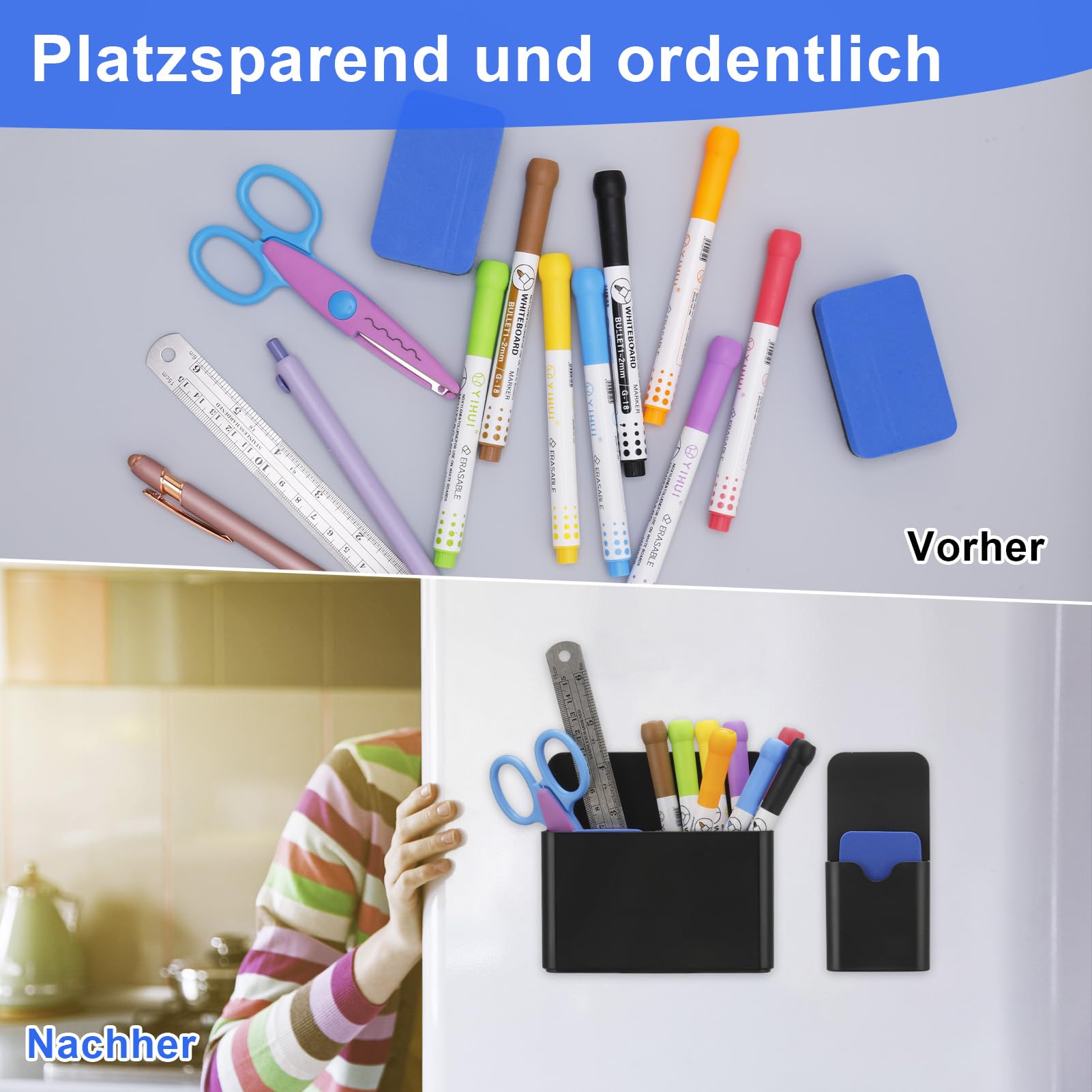 Platzsparend: Magnettafel Zubehör Stifthalter Stifthalter können Platz effektiv nutzen, Schreibwaren und kleine Gegenstände auf dem Schreibtisch organisieren und die Arbeitsumgebung aufgeräumter machen.