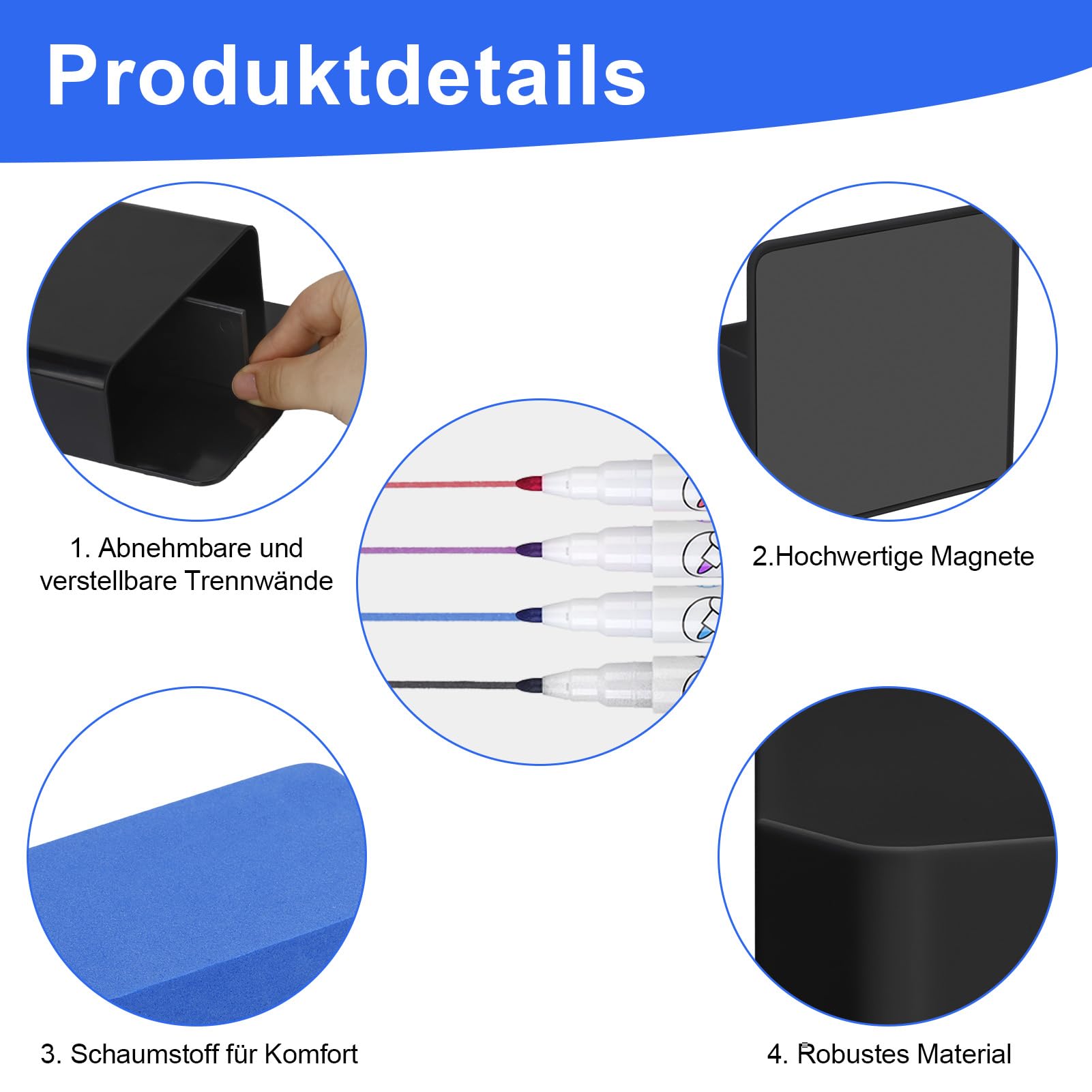 Praktisch und praktisch: Das magnetische Design von Whiteboard Zubehör lässt sich zur einfachen Verwendung und Aufbewahrung einfach an Whiteboards oder anderen Metalloberflächen befestigen.