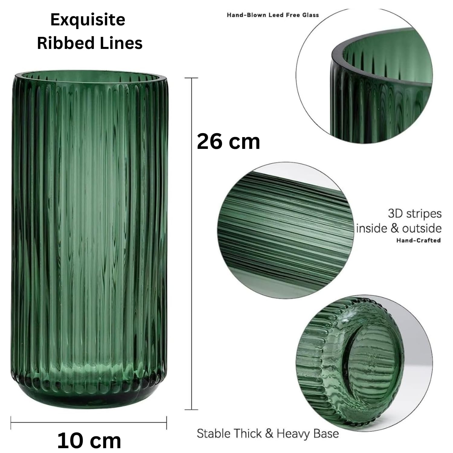 Vzmiza Grün Glas Vase 26CM Für Moderne Heimdekoration - Flower Vase Für Pampasgras - nordischer Boho-Stil vasen Glas für Hochzeit - Gross Gerippt Blumenvase für tulpen-Esstisch, Wohnen-BodenVase