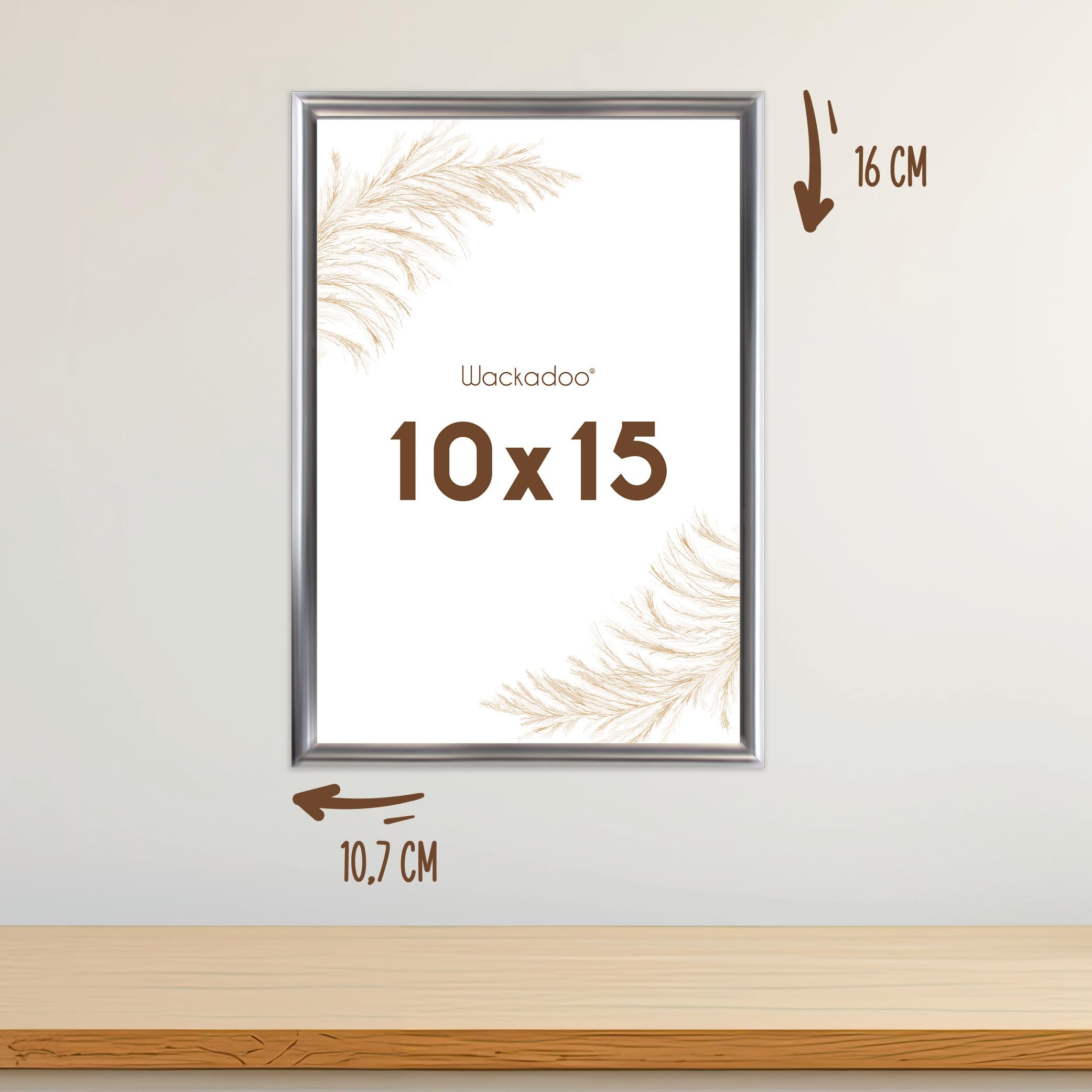 Wackadoo Bilderrahmen 10x15 Silber 5er Set Fotowand Fotorahmen aus leichtem Kunststoff mit Glas Picture frame Poster