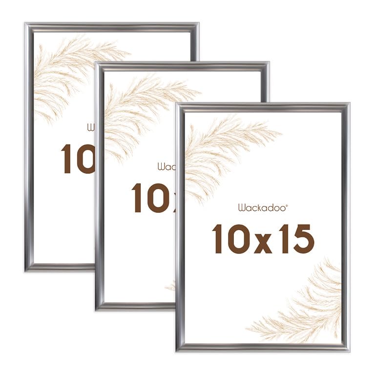 Wackadoo Bilderrahmen 10x15 Silber 3er Set Fotowand Fotorahmen aus leichtem Kunststoff mit Glas Picture frame Poster
