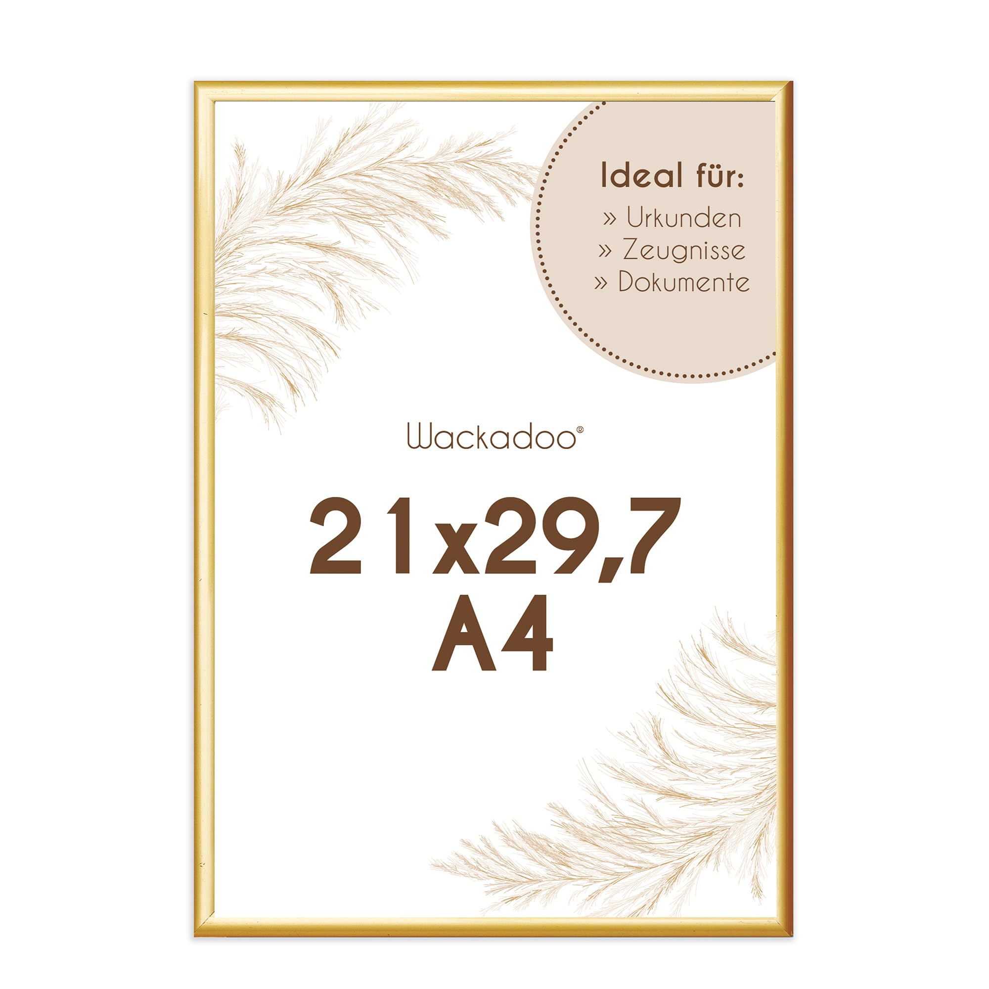 Wackadoo Bilderrahmen A4 21x29,7 (DIN A4) gold Fotowand Dokumentenrahmen Fotorahmen aus leichtem Kunststoff mit Glas Picture frame Poster