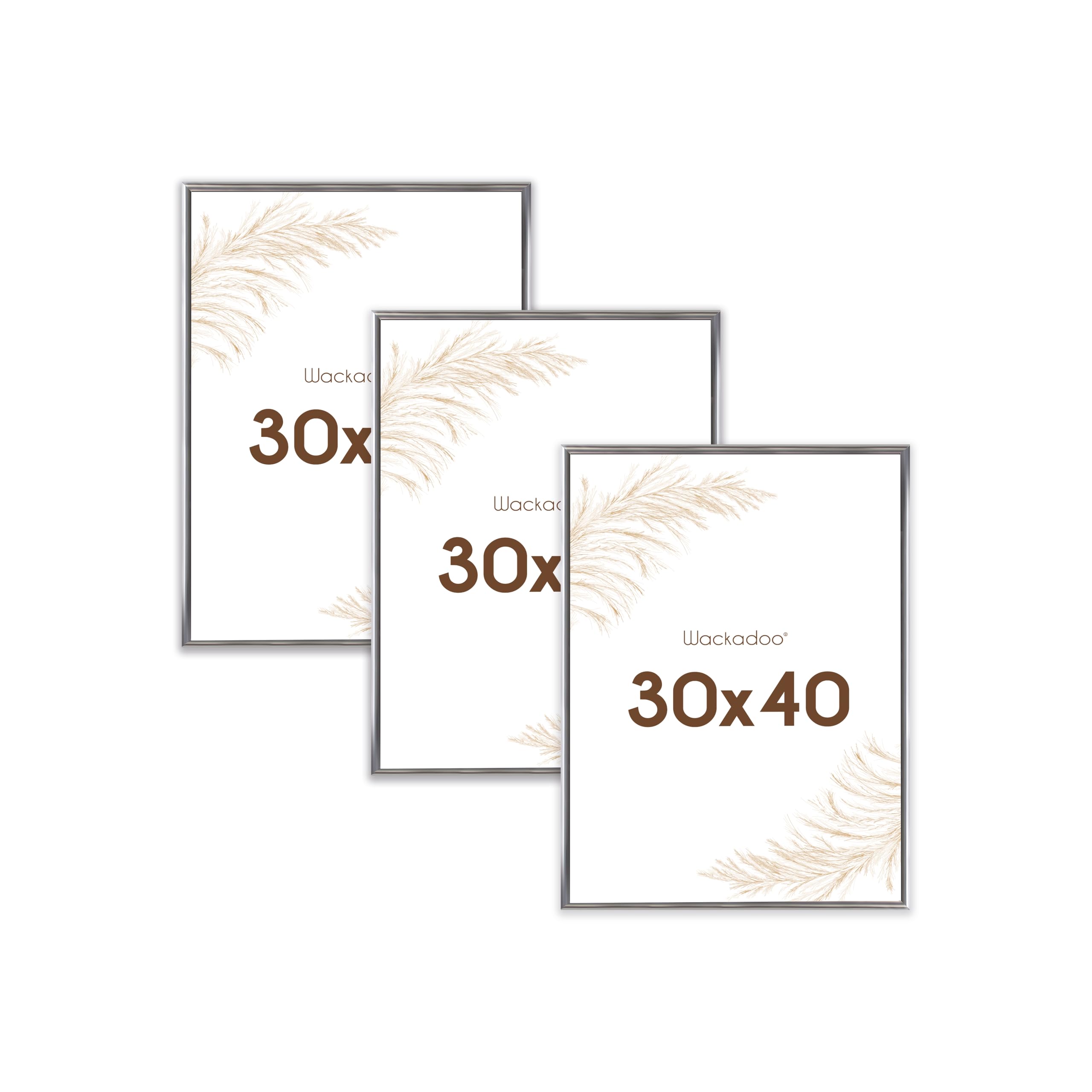 Wackadoo Bilderrahmen 30x40 Silber 3er Set Fotowand Fotorahmen aus leichtem Kunststoff mit Glas Picture frame Poster
