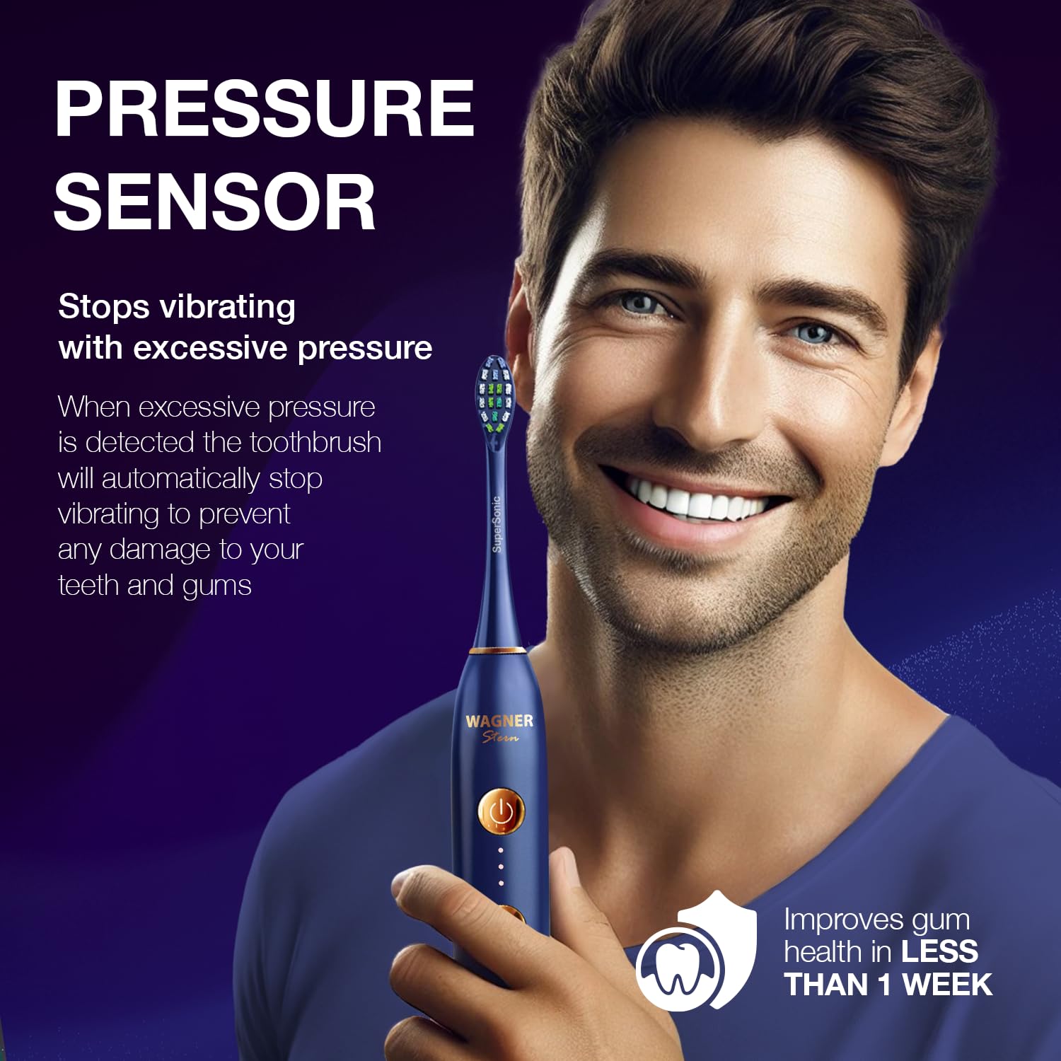 • WHITEN+ TECHNOLOGY: Diese elektrische Zahnbürste ist zu 100 % von Zahnärzten zugelassen und verfügt über 2 Aufhellungsmodi. Die Wagner Zahnbürste entfernt bis zu 10 Mal mehr Plaque als eine Handzahnbürste. Infolgedessen beginnt es, die Zähne in weniger als 1 Woche aufzuhellen, und es verbessert die Zahnfleischgesundheit in weniger als 2 Wochen. Bitte wechseln Sie den Aufhellungsmodus für jede Reinigung, um das beste Aufhellungsergebnis zu erzielen.