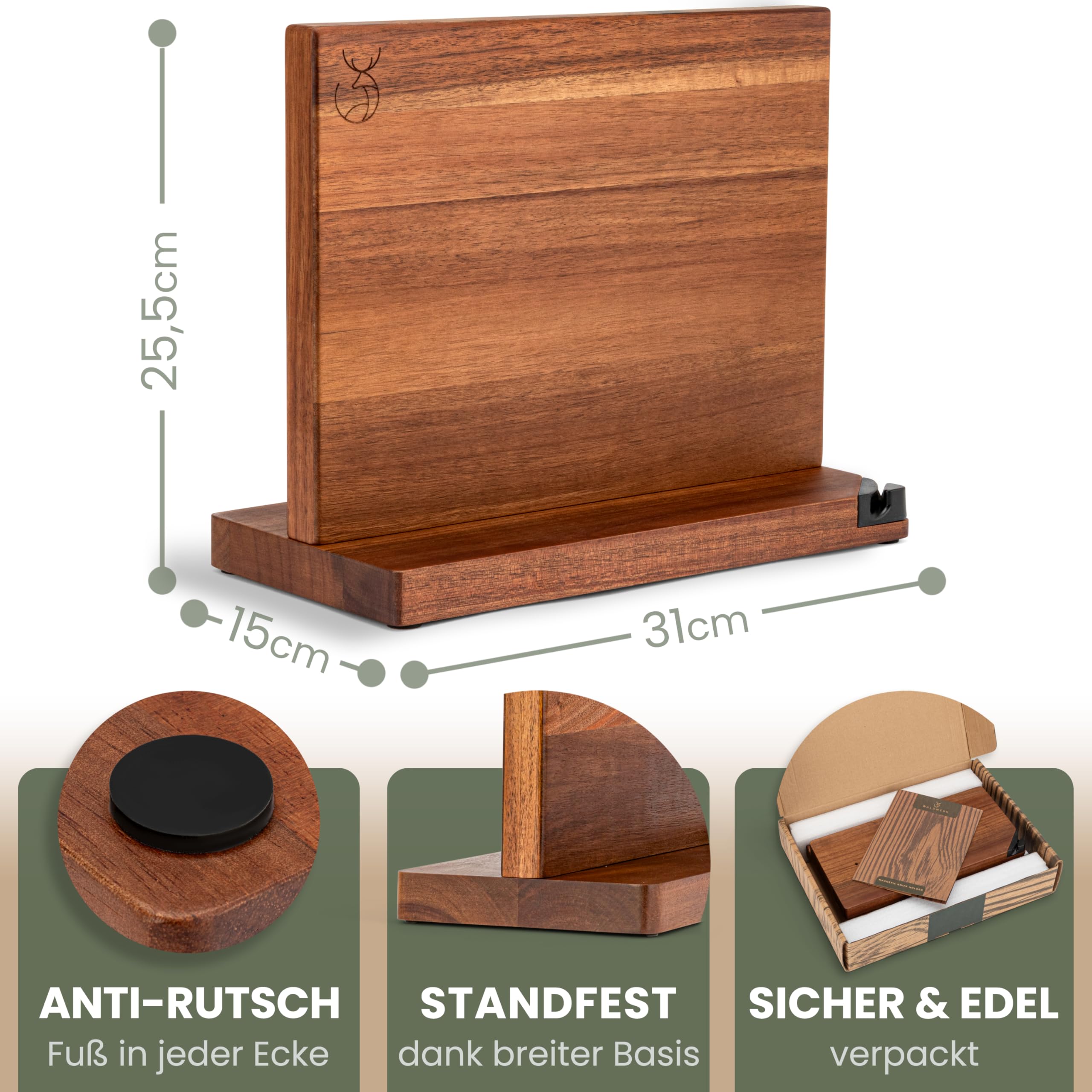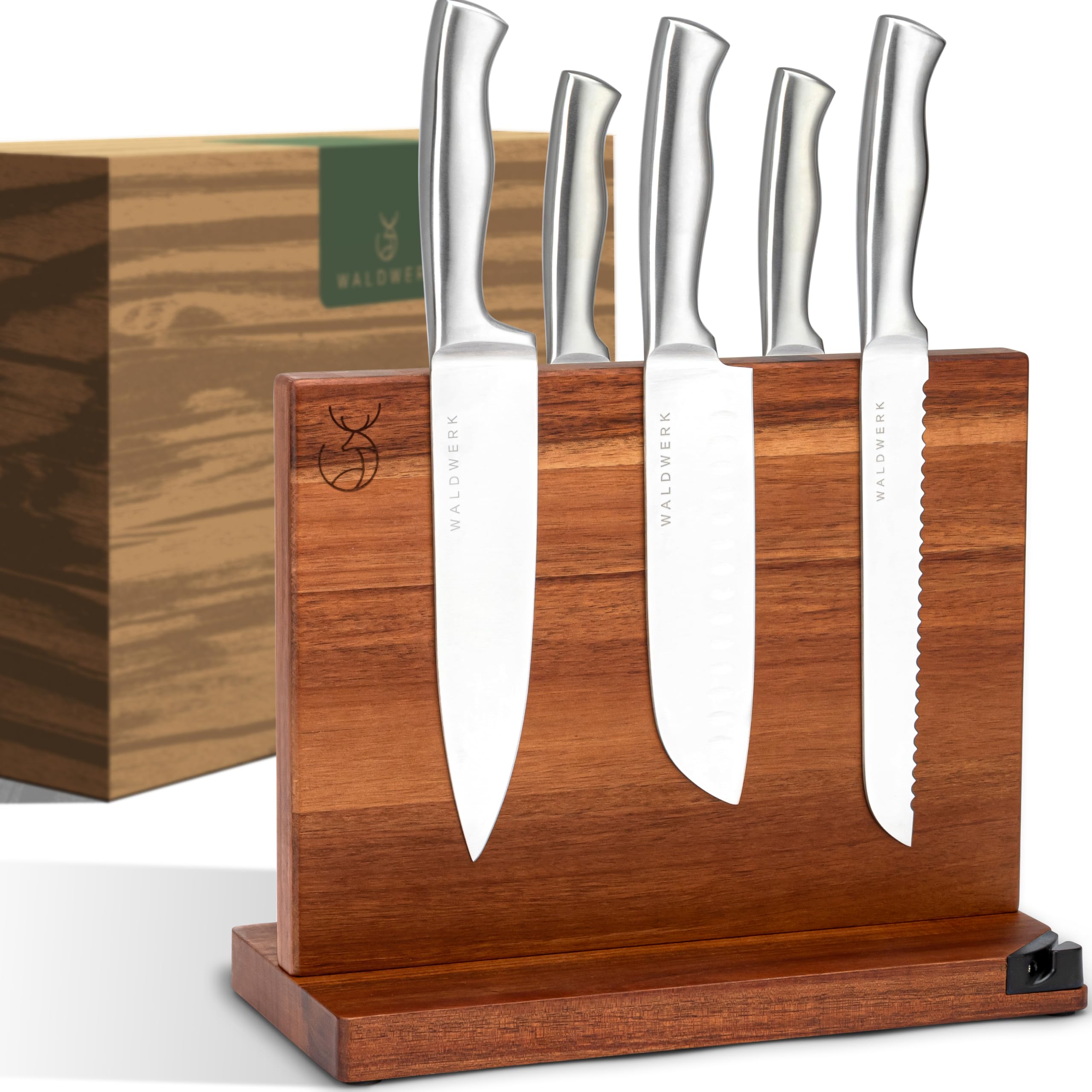 WALDWERK Messerblock magnetisch ohne Messer (31cm) - Messerhalter aus edlem Akazienholz - unbestückter magnetischer Messerblock
