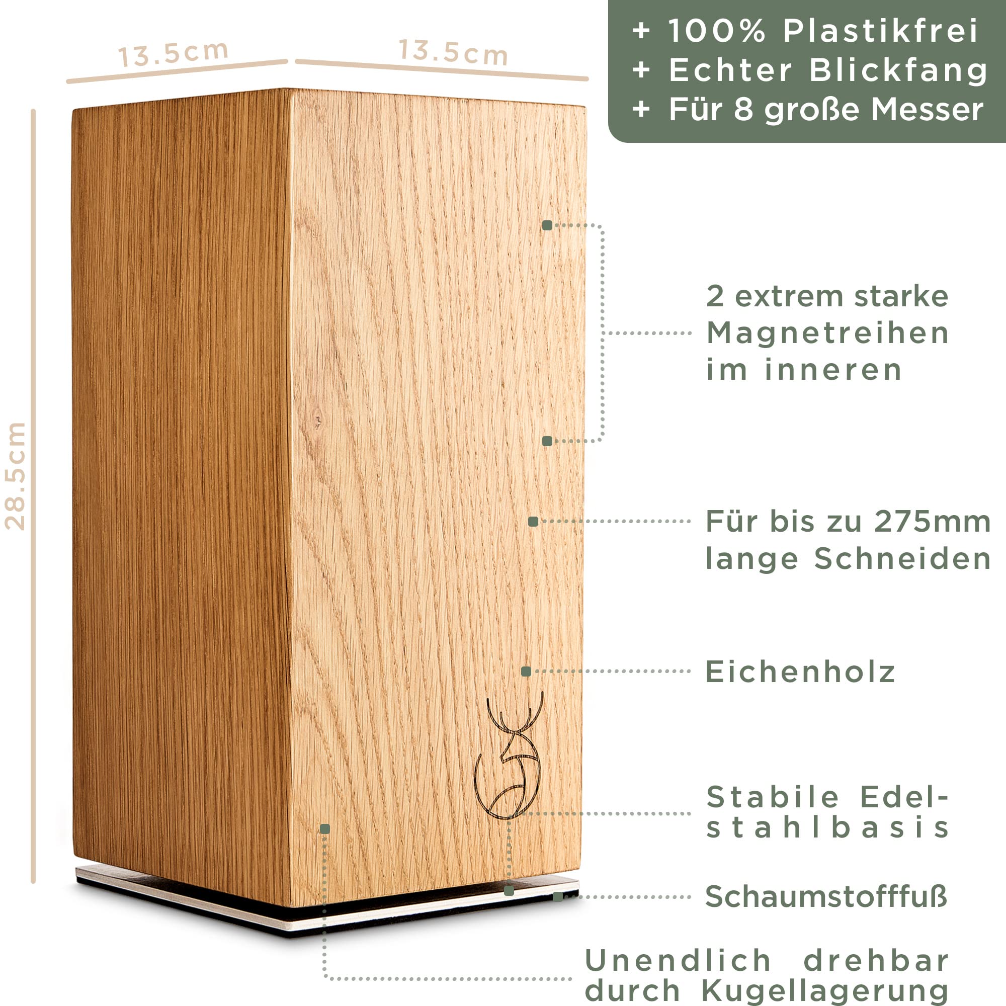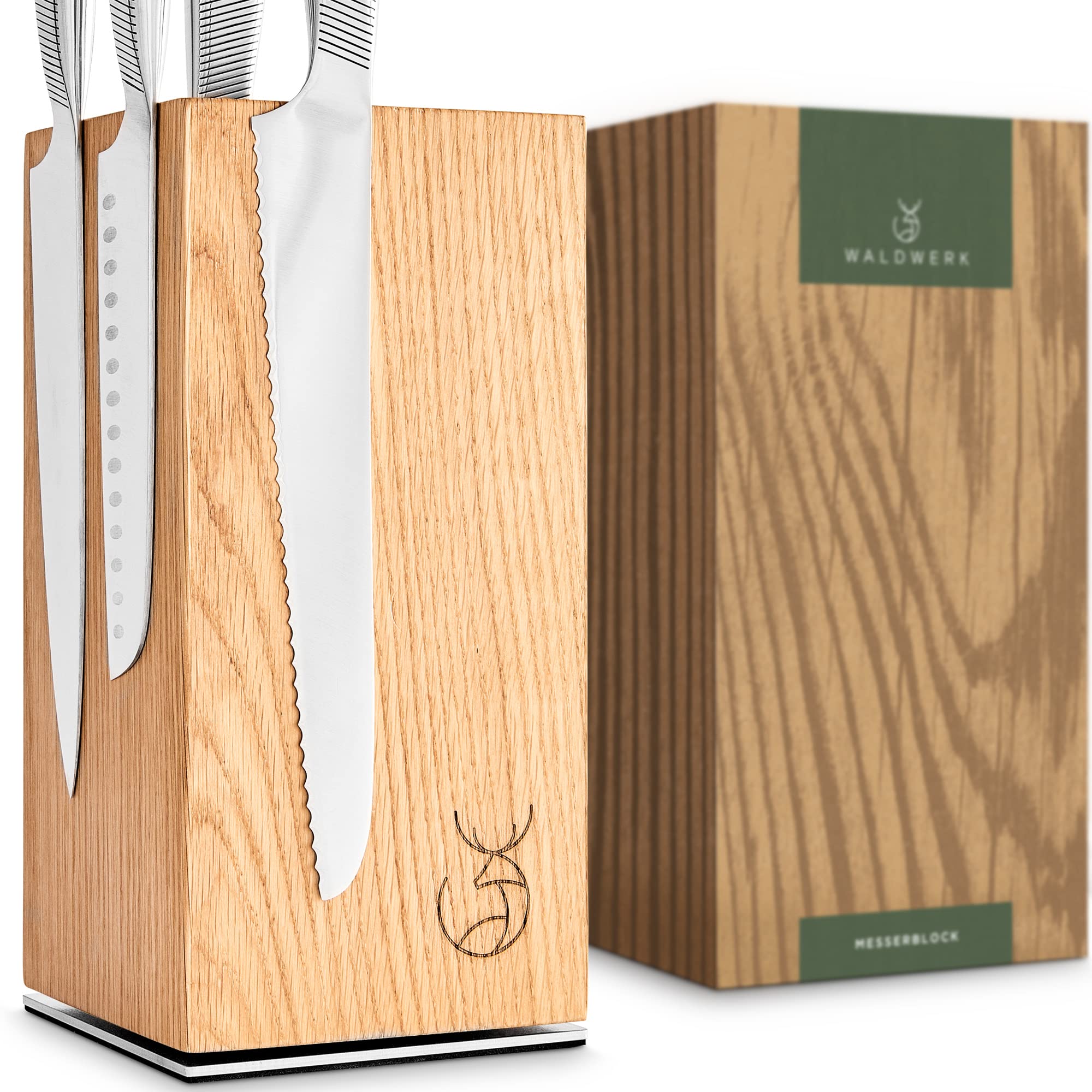 WALDWERK Design Messerblock ohne Messer - Messerblock magnetisch und drehbar aus edlem Eichenholz - Messerhalter für Messer