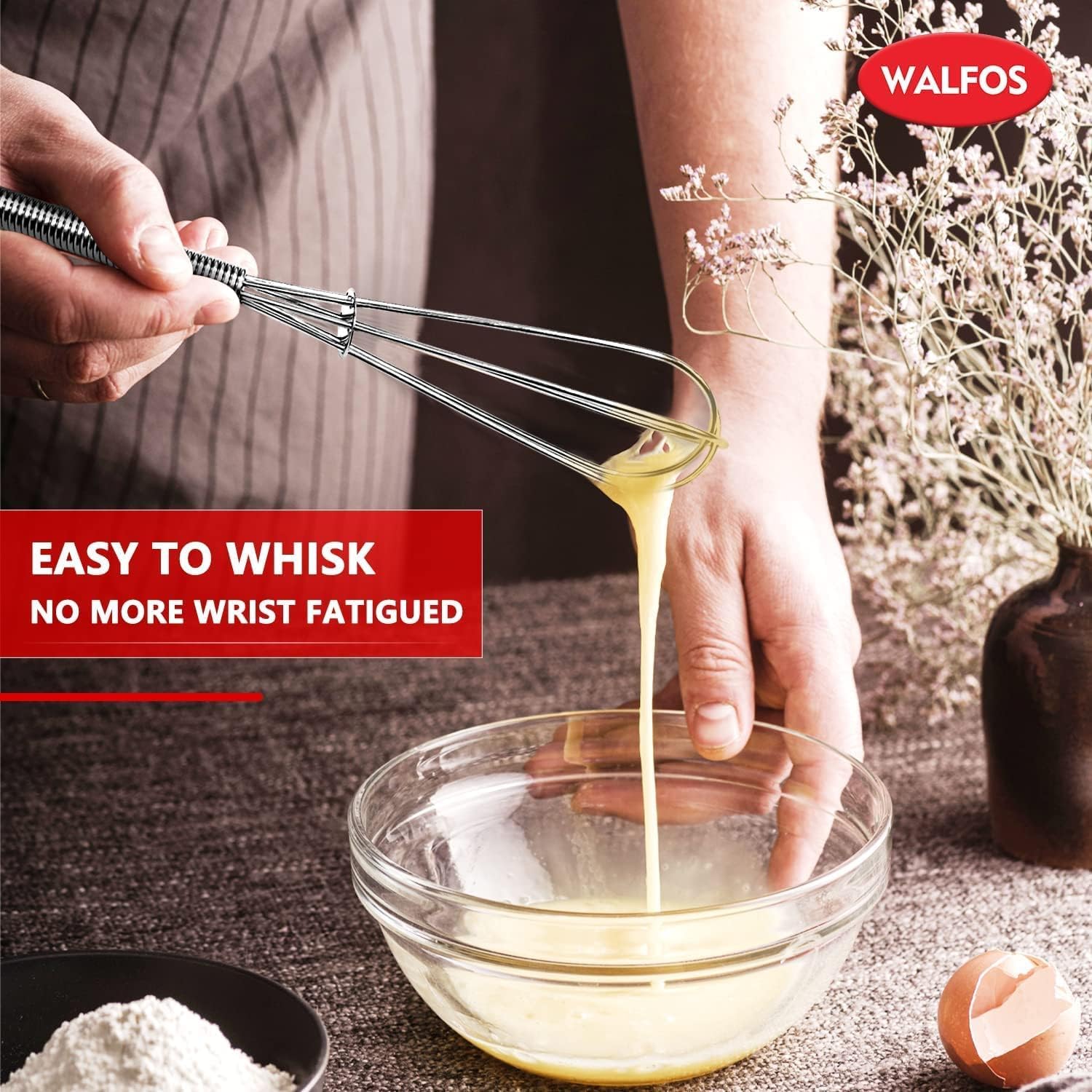 Walfos Mini Schneebesen - Kleiner Schneebesen Edelstahl - Küchen Ballonschneebesen, (13cm+18cm)Dicker Edelstahldraht& Starke Griffe, Eieraufschäumer zum Kochen, Mixen, Verquirlen, Rühren, Schlagen.