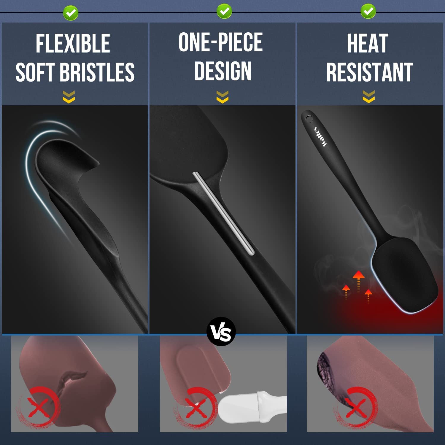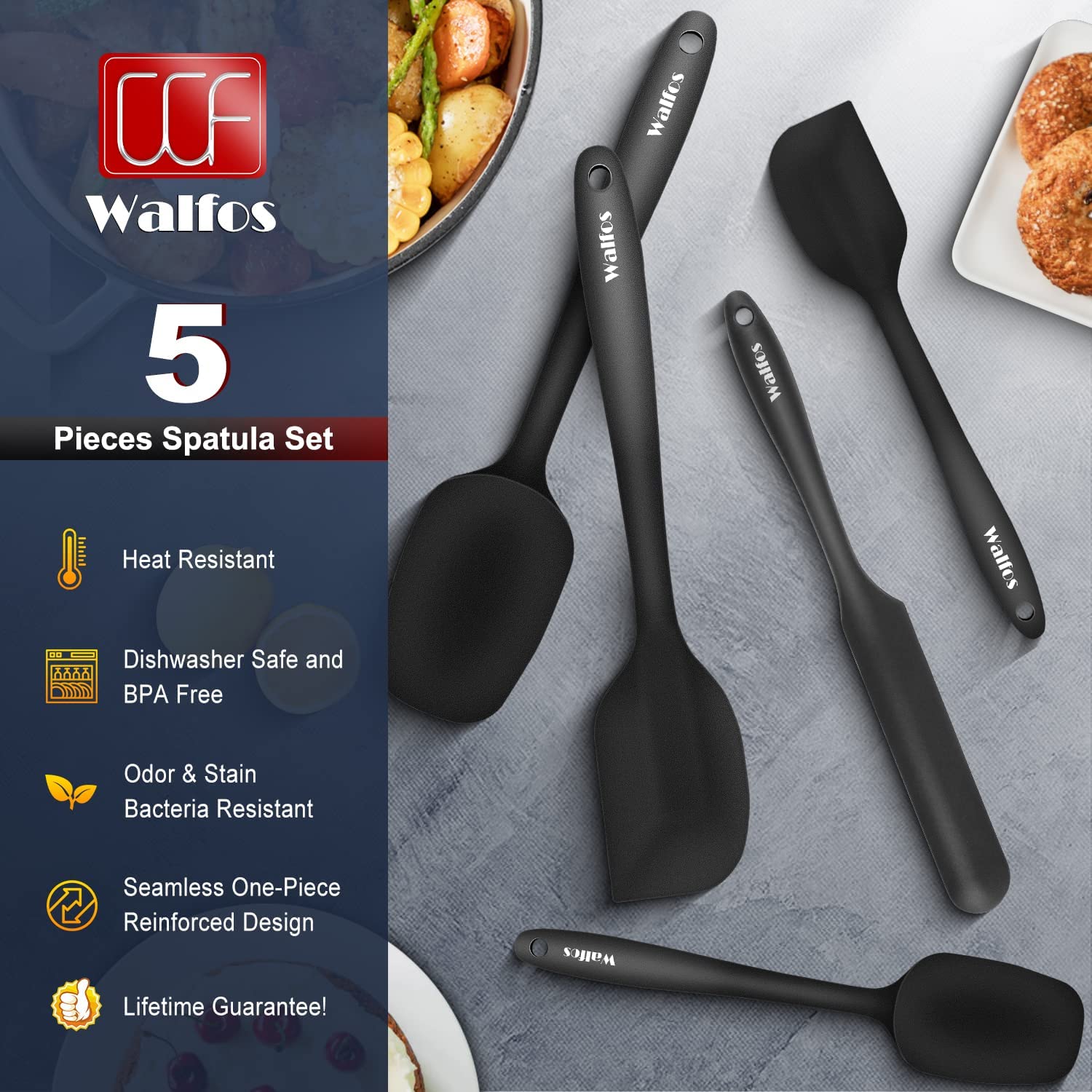 Walfos Silikon Spachtel, Hitzebeständige bis 600°F, Antihaft-Küchenbackwerkzeuge Silikon Spatel Set mit Metallkern Ideal für Kochen und Backen (5 Stück Schwarze Spatel)