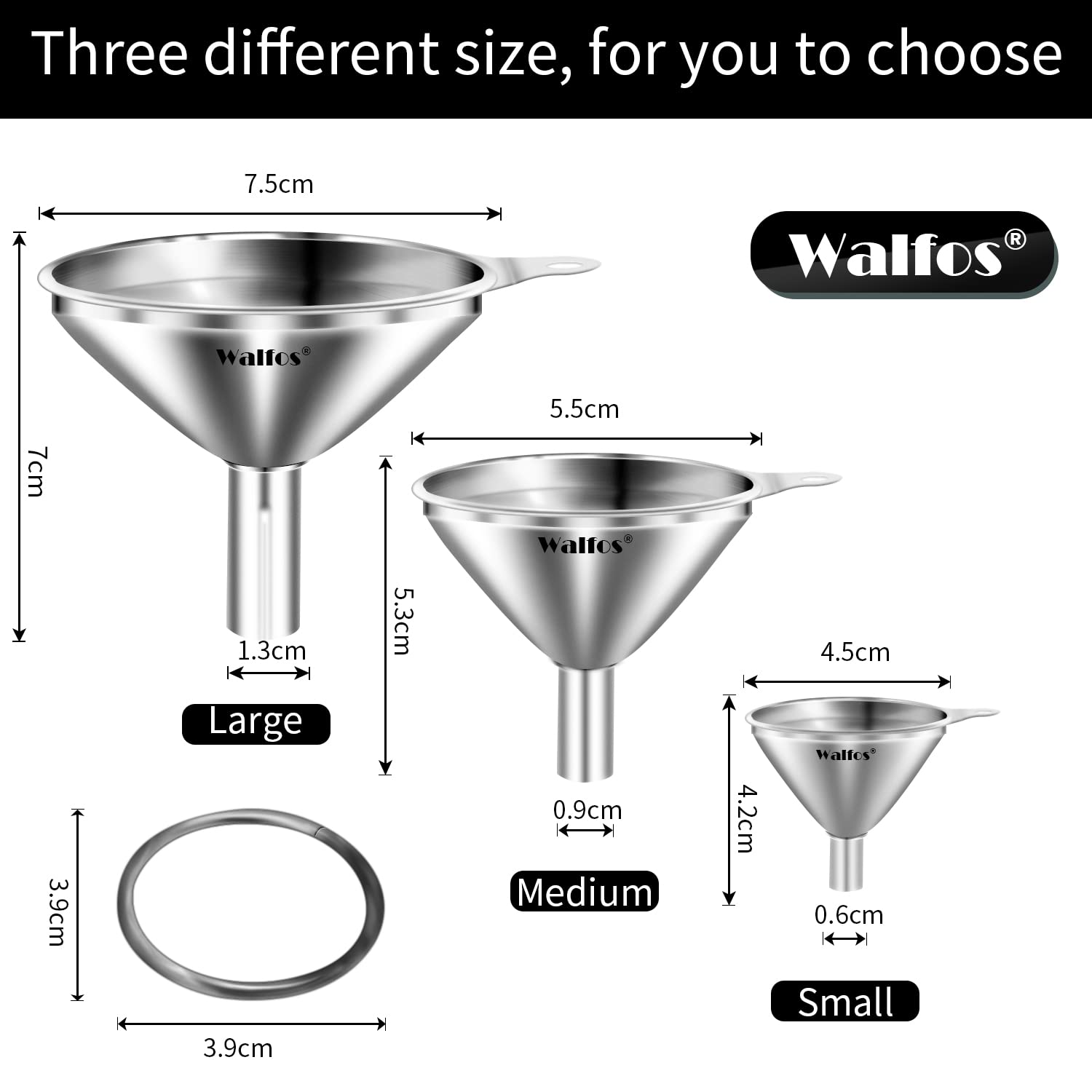 INCLUYE 3 TAMAÑOS - Boca grande - 7,5 cm de diámetro; Boca media de 5,5 cm de diámetro; Boca pequeña -1,5 "/ 4,5 cm, ¡este diámetro de embudo para sus diferentes necesidades!