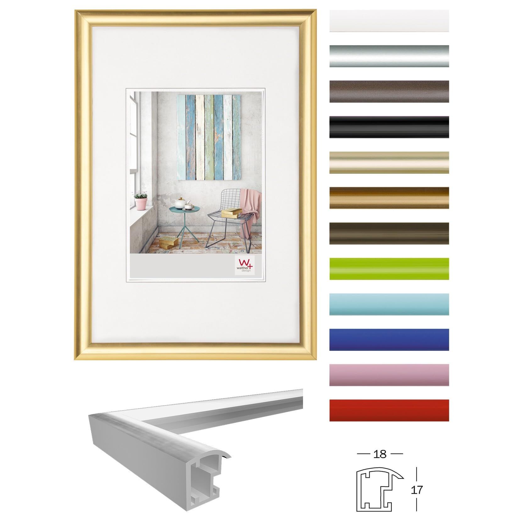 walther design Bilderrahmen silber 18 x 24 cm Trendstyle Kunststoffrahmen KP824S