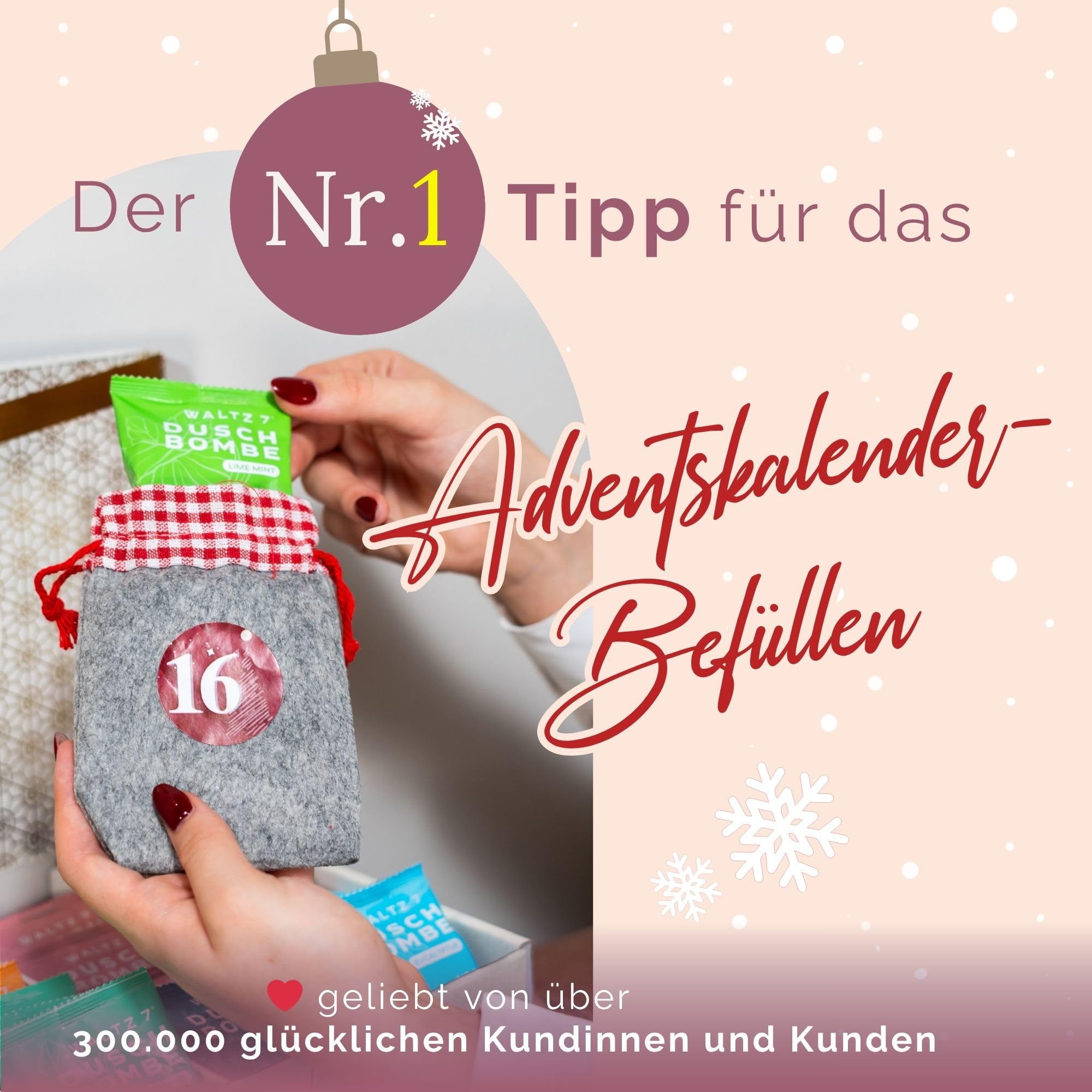 WALTZ 7 Original Duschbomben Set, 16 Stück, 8 Düfte, Weihnachtsgeschenke Frauen, Männer, Wichtelgeschenk, Geburtstagsgeschenk Freundin, Mama, Papa, Mitbringsel Kleinigkeiten, Dankeschön Geschenk Idee