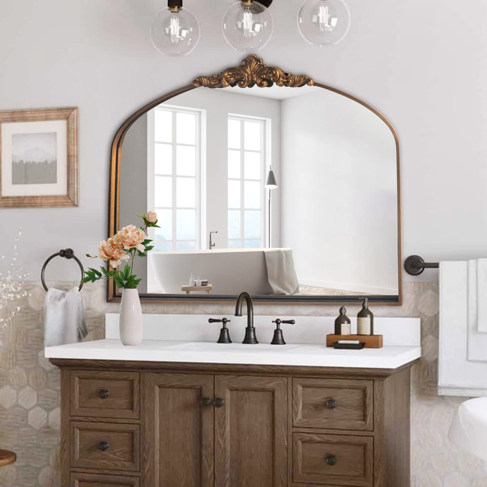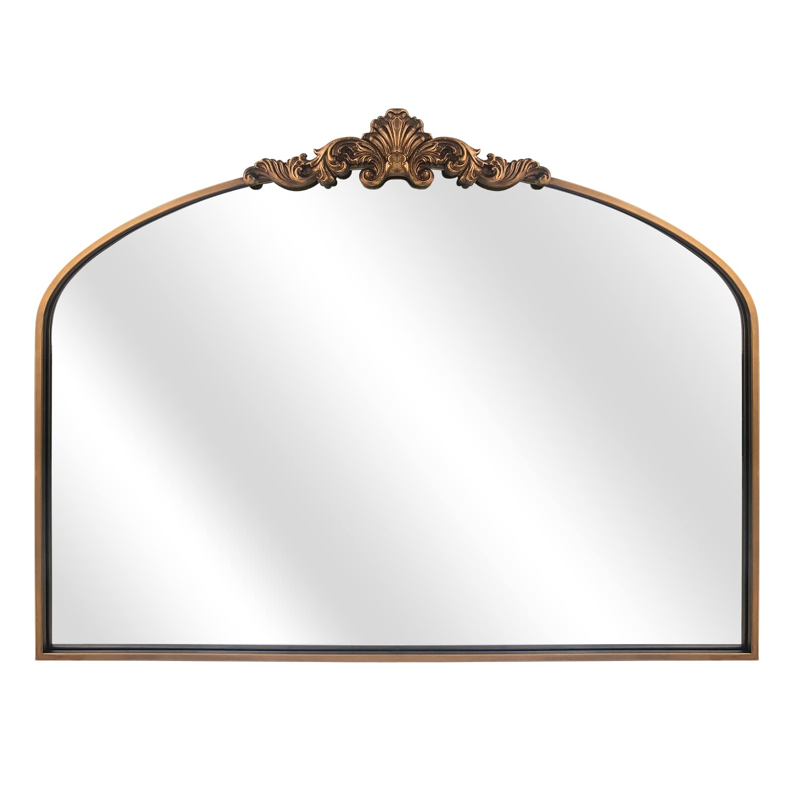 WAMIRRO Gewölbter Spiegel, traditioneller Vintage-Stil, verzierter Barockspiegel, antiker Messingspiegel für Eingang/Kamin/Wohnzimmer/Flur/Badezimmer, 36 x 30 cm, Gold
