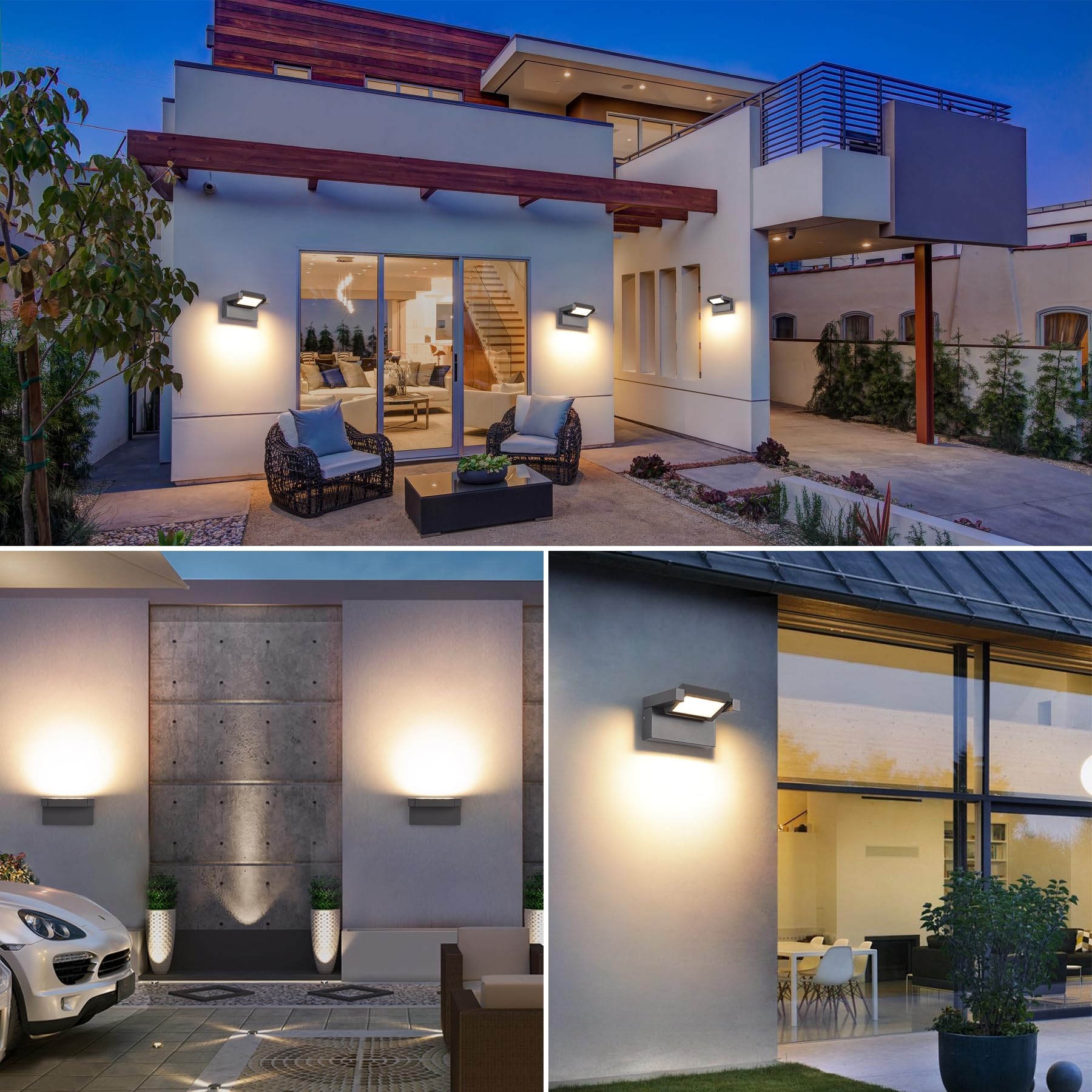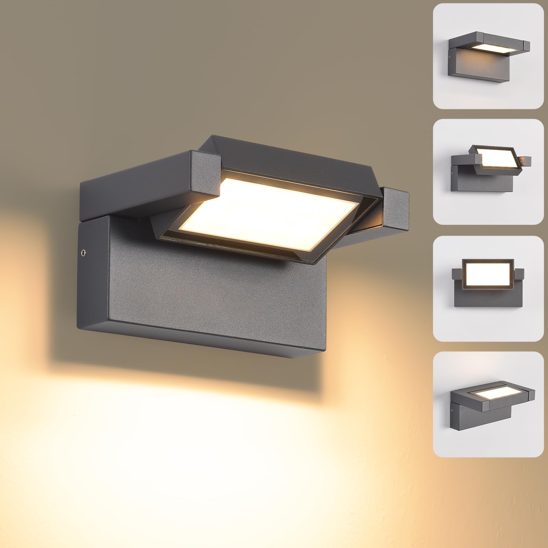 Aussenleuchte Wand 12W LED,Wandleuchte Aussen Innen,IP65 wasserdichte Aussenwandleuchte 3000K Warmweiss Aussenleuchte,Wandlampe mit 350° Schwenkbar Panel, Aussenlampe für Garten Terrasse Balkon Dunkelgrau